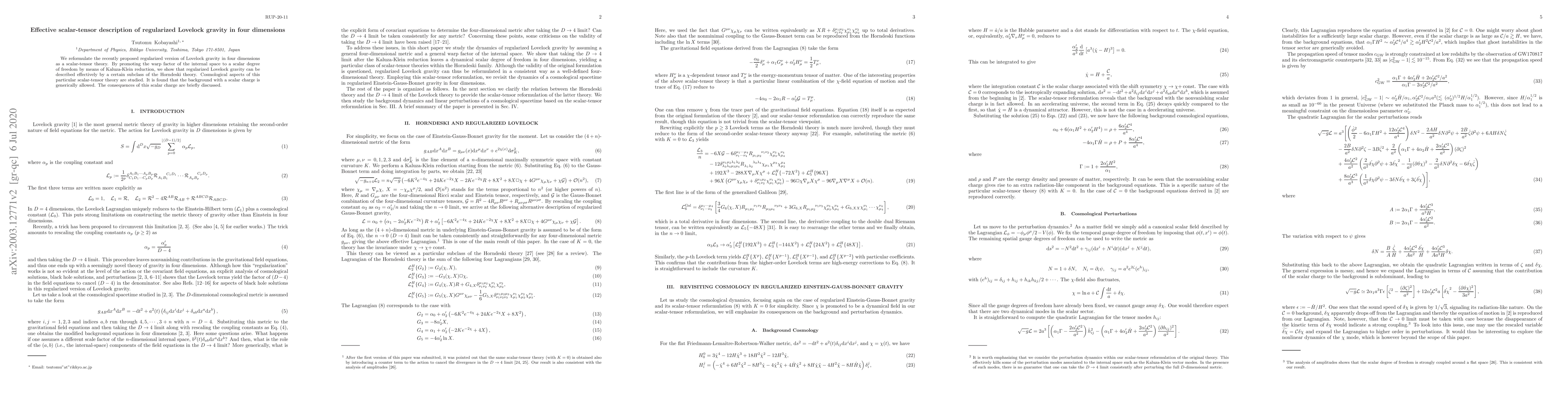 This paper reformulates regularized Lovelock gravity in four dimensions as a scalar-tensor theory through Kaluza-Klein reduction, showing it can be described by a subclass of Horndeski theory. It explores cosmological implications, finding that a background with a scalar charge is generally permissible and briefly discusses its consequences.
