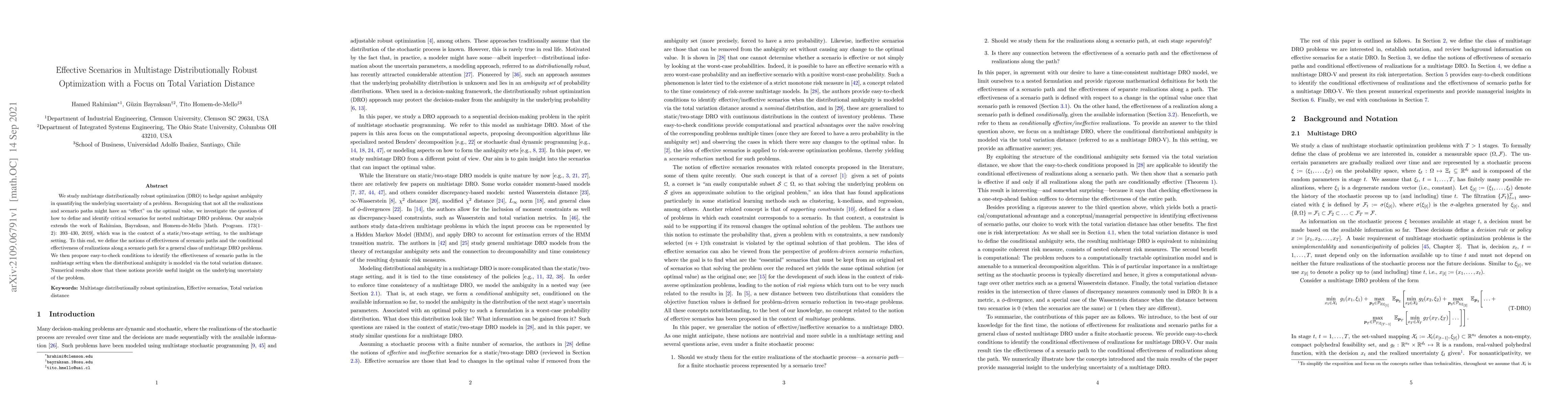 This paper extends the concept of effective scenarios in multistage distributionally robust optimization (DRO) to identify critical paths under total variation distance, offering conditions to determine scenario effectiveness and providing insights into problem uncertainty. Numerical results demonstrate the practical utility of these effectiveness measures.