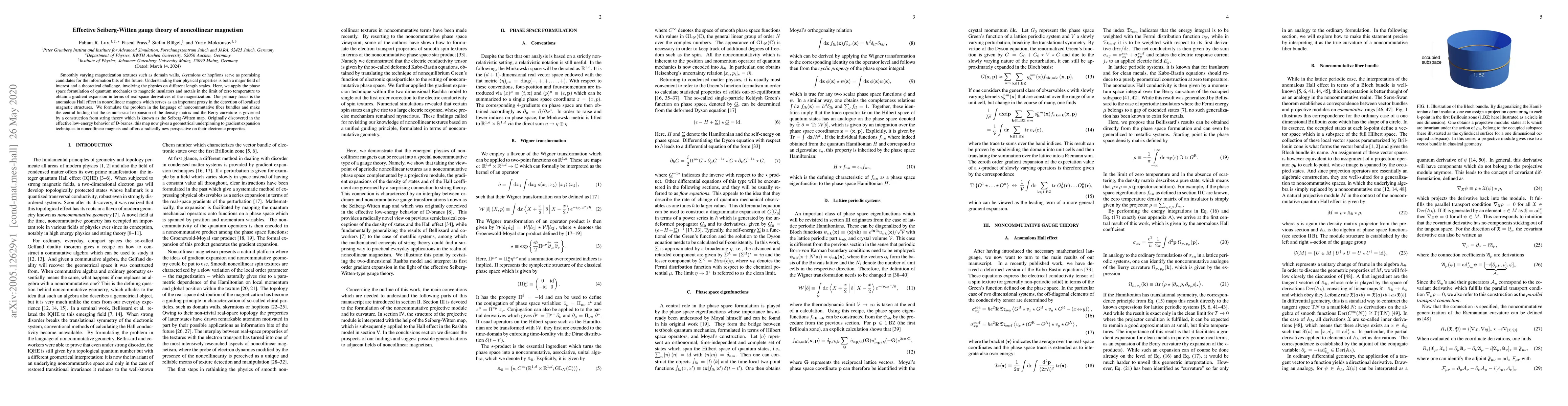 Smoothly varying magnetization textures such as domain walls, skyrmions or hopfions serve as promising candidates for the information bits of the future. Understanding their physical properties is both a major field of interest and a theoretical challenge, involving the physics on different length scales. Here, we apply the phase space formulation of quantum mechanics to magnetic insulators and metals in the limit of zero temperature to obtain a gradient expansion in terms of real-space derivatives of the magnetization. Our primary focus is the anomalous Hall effect in noncollinear magnets which serves as an important proxy in the detection of localized magnetic structures. We formulate the problem in the language of noncommutative fiber bundles and make the central finding that the semiclassical expansion of the density matrix and the Berry curvature is governed by a construction from string theory which is known as the Seiberg-Witten map. Originally discovered in the effective low-energy behavior of D-branes, this map now gives a geometrical underpinning to gradient expansion techniques in noncollinear magnets and offers a radically new perspective on their electronic properties.