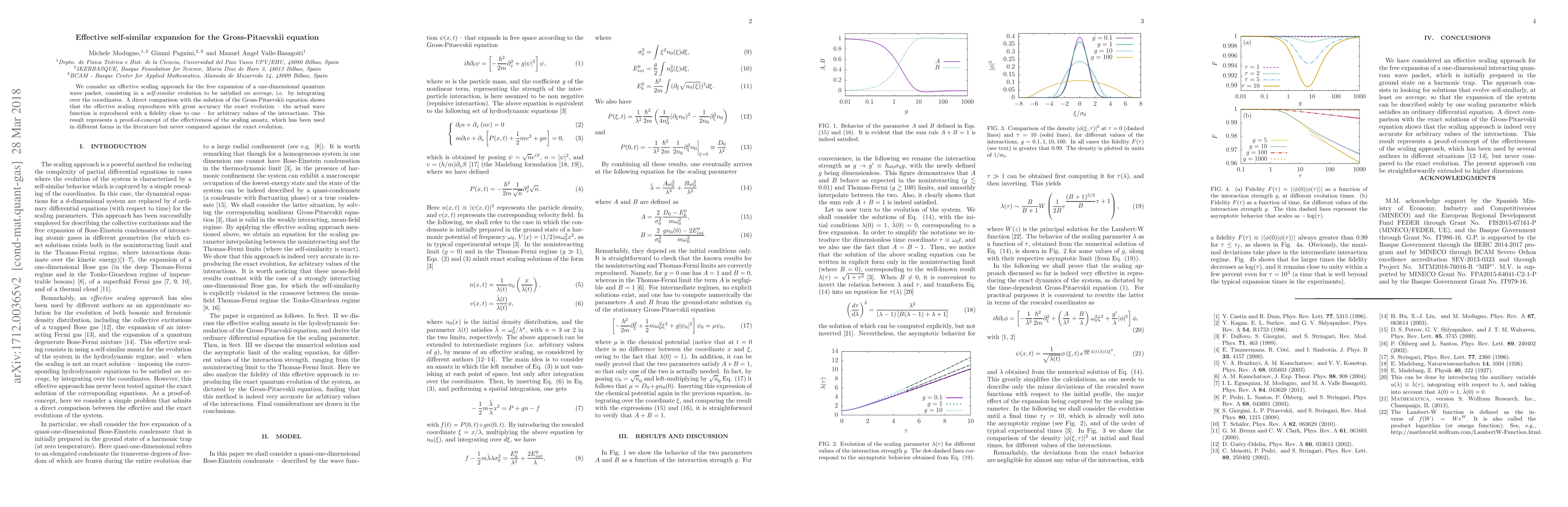 This research introduces an effective scaling approach for the free expansion of a one-dimensional quantum wave packet, proven to accurately reproduce the exact evolution of the Gross-Pitaevskii equation solution for any interaction values.