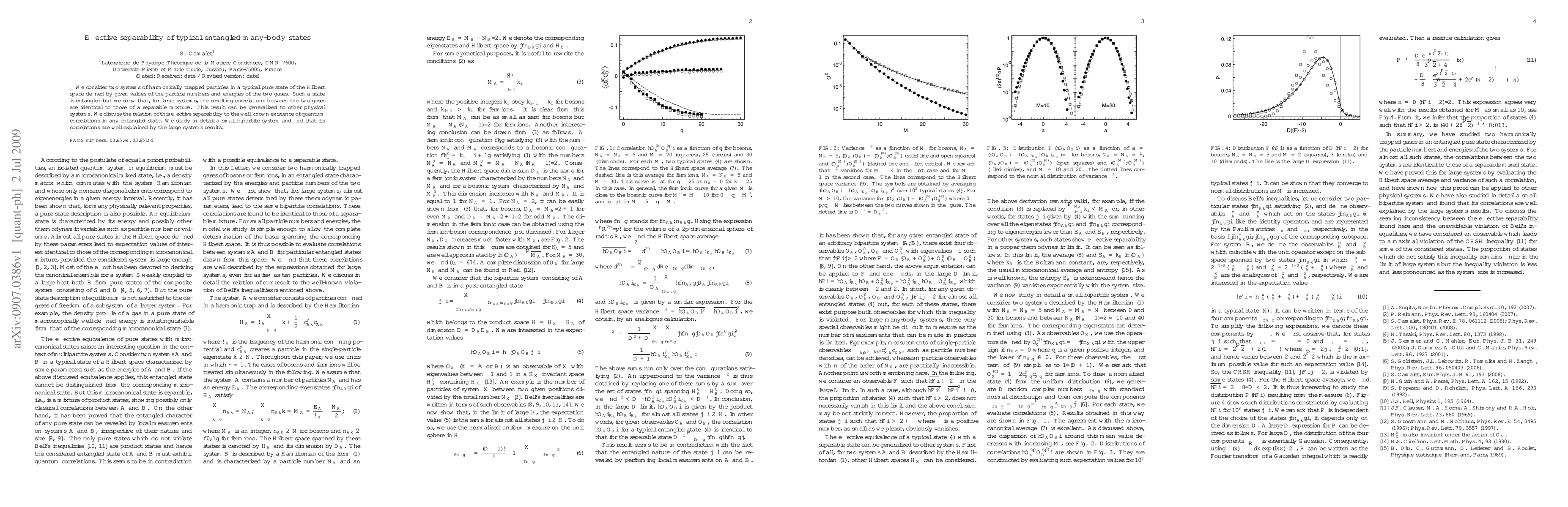 We consider two systems of harmonically trapped particles in a typical pure state of the Hilbert space defined by given values of the particle numbers and energies of the two gases. Such a state is entangled but we show that, for large systems, the resulting correlations between the two gases are identical to those of a separable mixture. This result can be generalized to other physical systems. We discuss the relation of this effective separability to the well-known existence of quantum correlations in any entangled state. We study in detail a small bipartite system and find that its correlations are well explained by the large systems results.