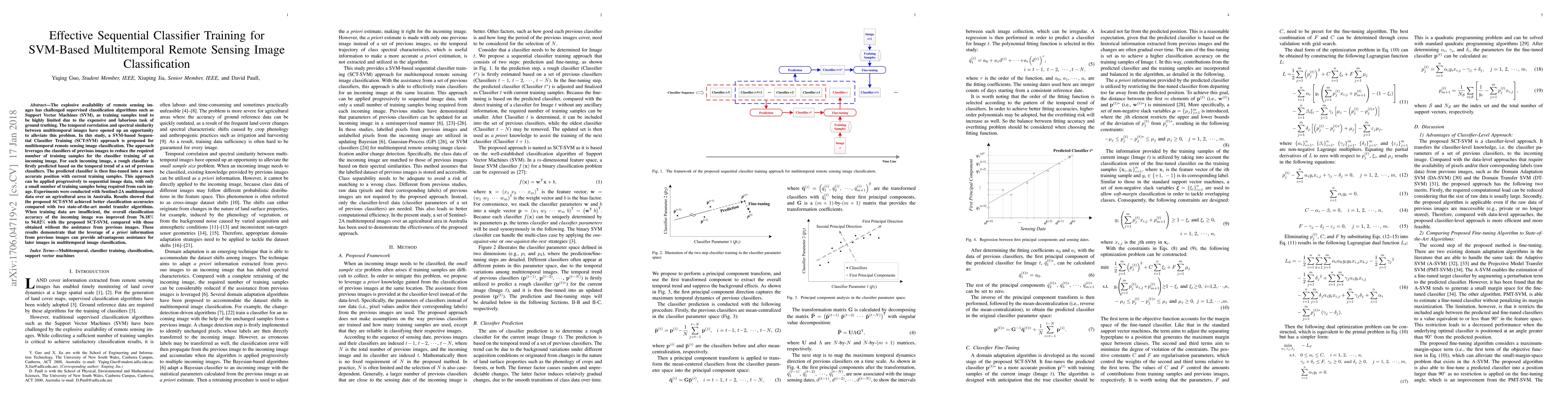 This study proposes a Sequential Classifier Training (SCT-SVM) approach for multitemporal remote sensing image classification using SVM, which leverages previous classifiers to reduce training sample requirements, significantly improving classification accuracy when training data are limited. Experiments on Sentinel-2A data in Australia demonstrated superior performance compared to state-of-the-art methods.