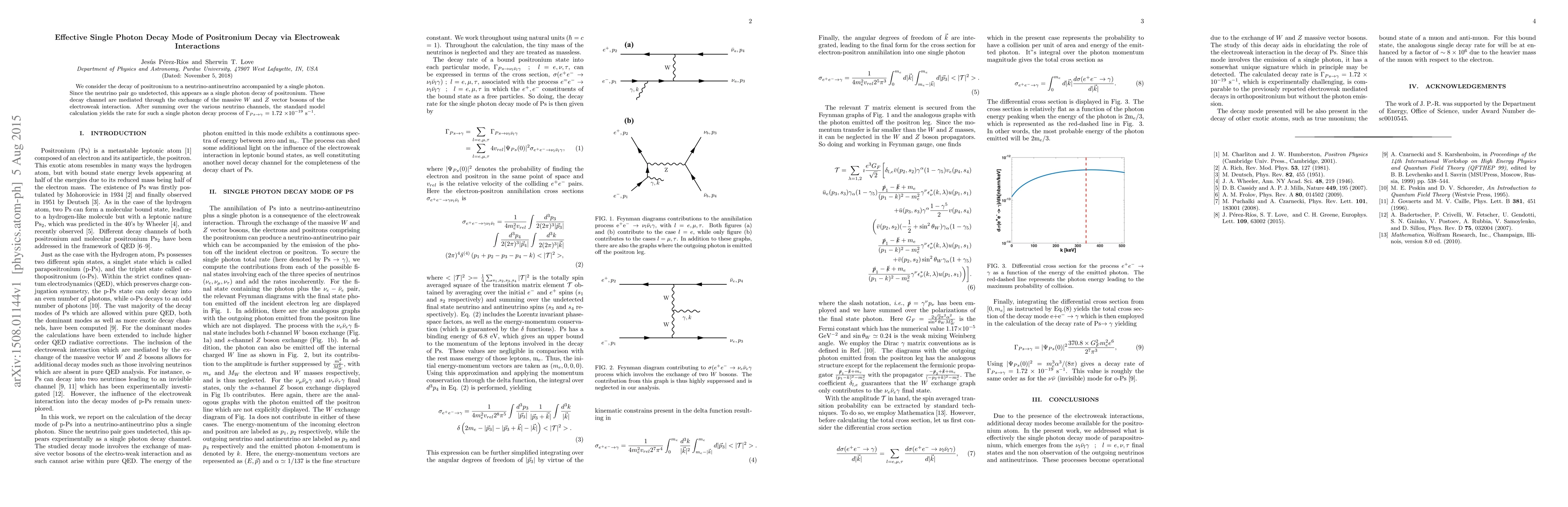 This paper investigates the decay of positronium into a single photon via undetected neutrino-antineutrino pairs, mediated by electroweak interactions involving $W$ and $Z$ bosons, yielding a decay rate of $\Gamma_{Ps \rightarrow \gamma}$ = 1.72 $\times 10^{-19}$ s$^{-1}$.
