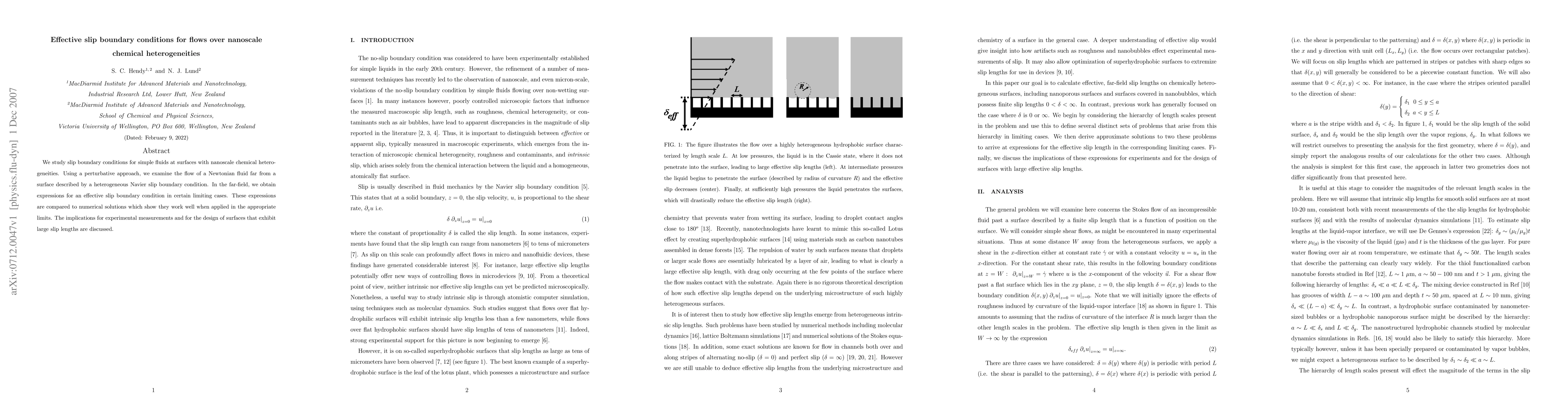 We study slip boundary conditions for simple fluids at surfaces with nanoscale chemical heterogeneities. Using a perturbative approach, we examine the flow of a Newtonian fluid far from a surface described by a heterogeneous Navier slip boundary condition. In the far-field, we obtain expressions for an effective slip boundary condition in certain limiting cases. These expressions are compared to numerical solutions which show they work well when applied in the appropriate limits. The implications for experimental measurements and for the design of surfaces that exhibit large slip lengths are discussed.