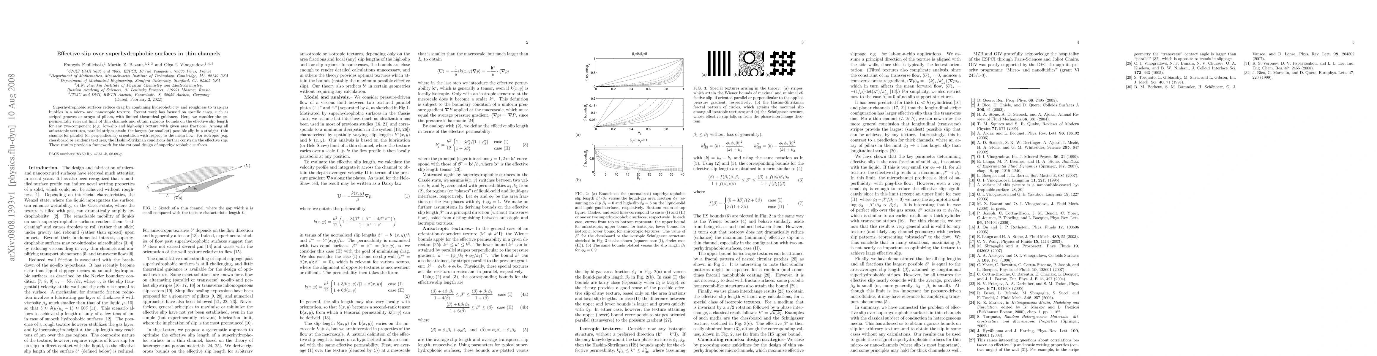 This paper establishes rigorous bounds on the effective slip length over superhydrophobic surfaces in thin channels, revealing that parallel stripes provide the maximum (or minimum) slip for parallel (or perpendicular) orientations relative to flow. It also applies the Hashin-Strikman conditions to isotropic textures, offering a theoretical framework for designing such surfaces to optimize fluid drag reduction.