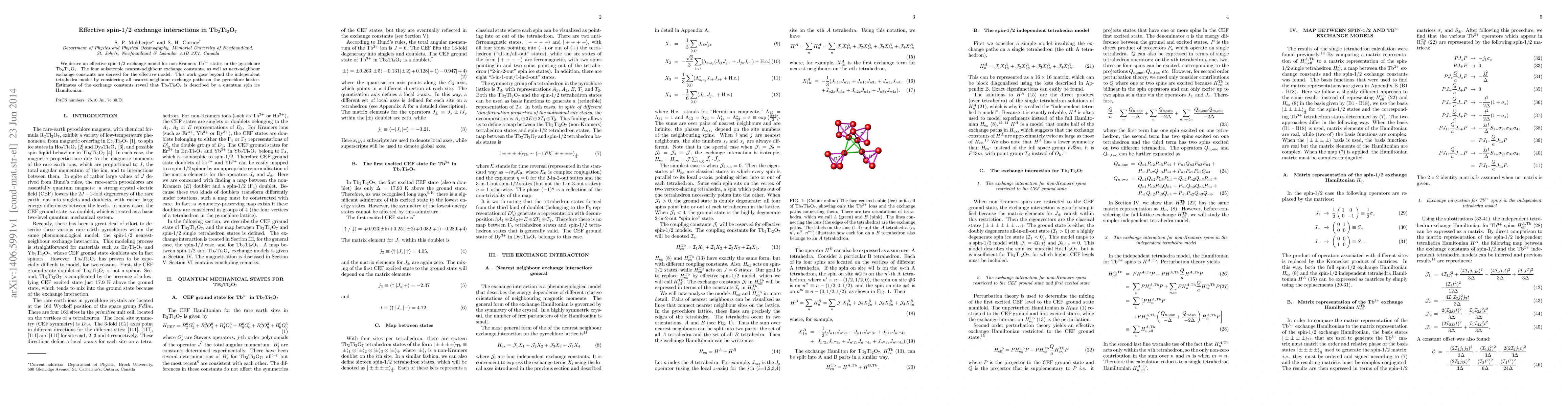 This research develops an effective spin-1/2 exchange model for Tb$_2$Ti$_2$O$_7$, identifying anisotropic exchange interactions beyond the independent tetrahedra model, leading to a quantum spin ice Hamiltonian. The comprehensive model includes all nearest-neighbour and next-neighbour exchange paths.