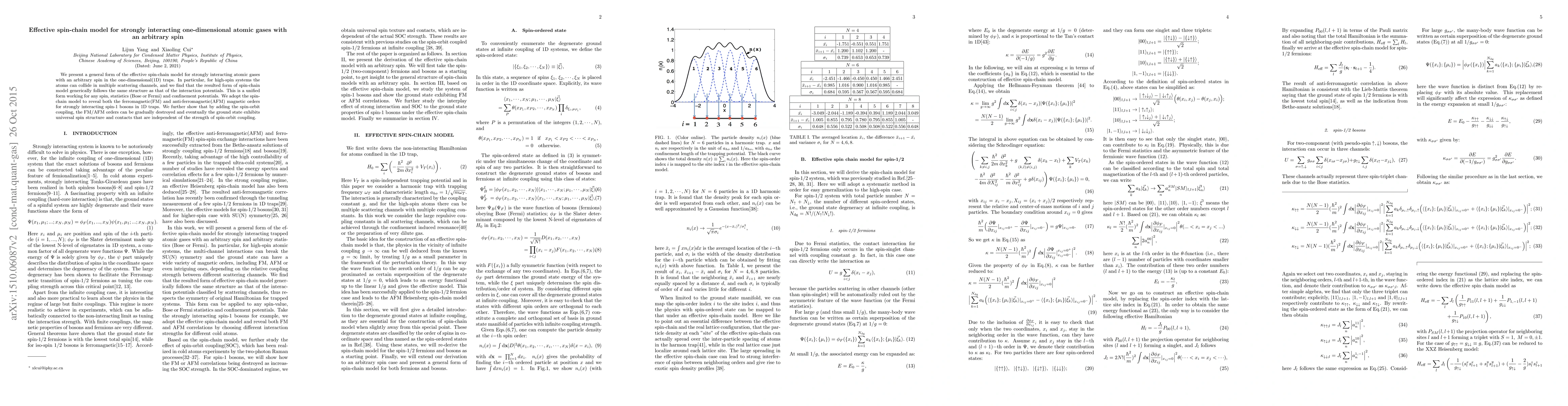 This paper develops a general effective spin-chain model for strongly interacting one-dimensional atomic gases with arbitrary spin, revealing ferromagnetic and anti-ferromagnetic orders. It also demonstrates how spin-orbit coupling can gradually destroy these orders, leading to a universal spin structure independent of coupling strength.