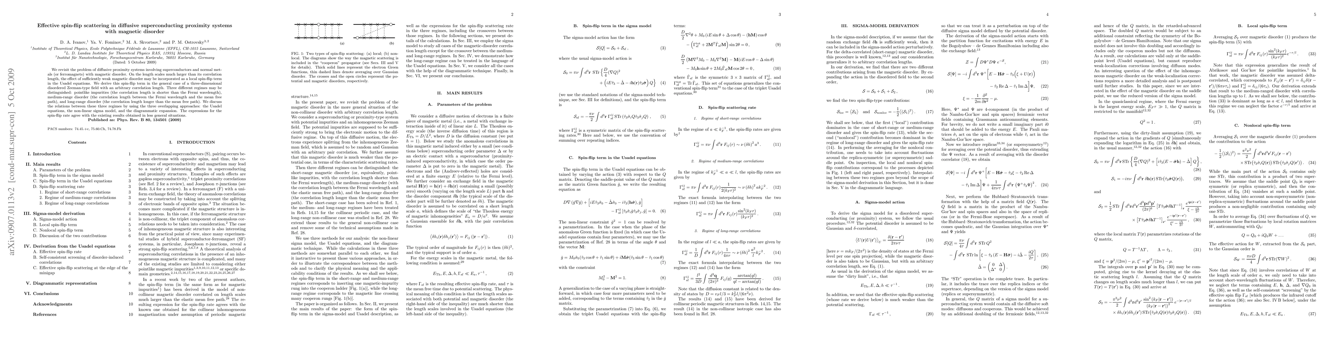 Researchers derived a spin-flip term for diffusive superconducting proximity systems with magnetic disorder, identifying three regimes based on the correlation length of the disorder and agreeing with existing results in less general situations.
