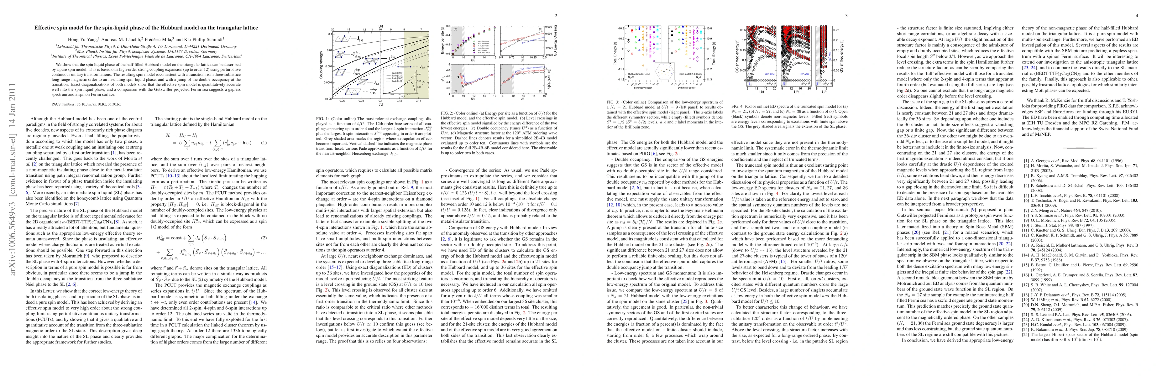 This paper demonstrates that the spin liquid phase of the Hubbard model on a triangular lattice can be accurately described by a pure spin model derived through a high-order strong coupling expansion. The effective spin model shows a transition from magnetic order to an insulating spin liquid phase, consistent with a gapless spectrum and a spinon Fermi surface.