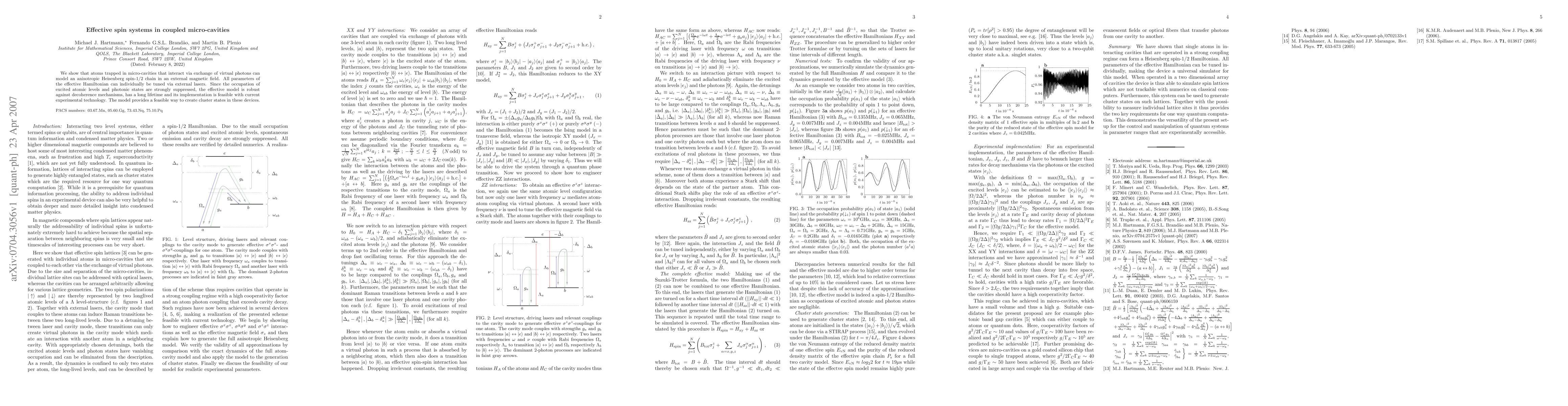 We show that atoms trapped in micro-cavities that interact via exchange of virtual photons can model an anisotropic Heisenberg spin-1/2 chain in an external magnetic field. All parameters of the effective Hamiltonian can individually be tuned via external lasers. Since the occupation of excited atomic levels and photonic states are strongly suppressed, the effective model is robust against decoherence mechanisms, has a long lifetime and its implementation is feasible with current experimental technology. The model provides a feasible way to create cluster states in these devices.