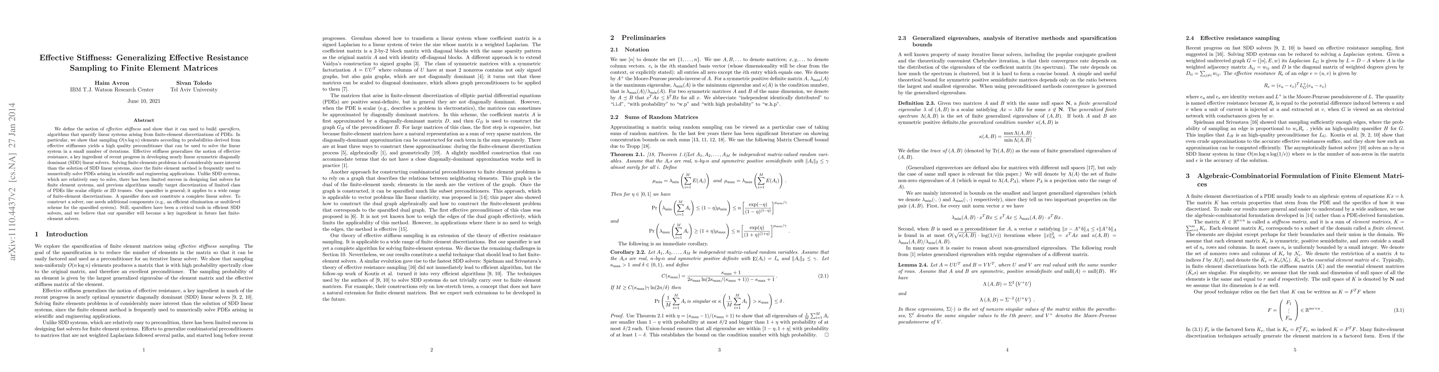 A new approach to solving finite element systems using effective stiffness is presented, offering a general method for creating high-quality preconditioners that can solve linear systems in fewer iterations.