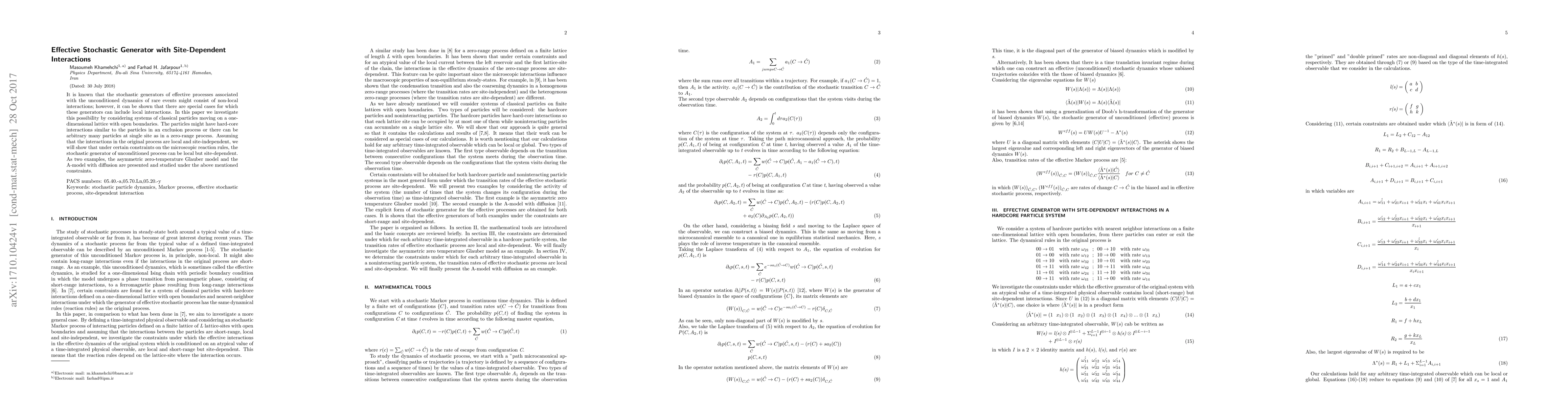 It is known that the stochastic generators of effective processes associated with the unconditioned dynamics of rare events might consist of non-local interactions; however, it can be shown that there are special cases for which these generators can include local interactions. In this paper we investigate this possibility by considering systems of classical particles moving on a one-dimensional lattice with open boundaries. The particles might have hard-core interactions similar to the particles in an exclusion process or there can be arbitrary many particles at single site as in a zero-range process. Assuming that the interactions in the original process are local and site-independent, we will show that under certain constraints on the microscopic reaction rules, the stochastic generator of unconditioned process can be local but site-dependent. As two examples, the asymmetric zero-temperature Glauber model and the A-model with diffusion are presented and studied under the above mentioned constraints.