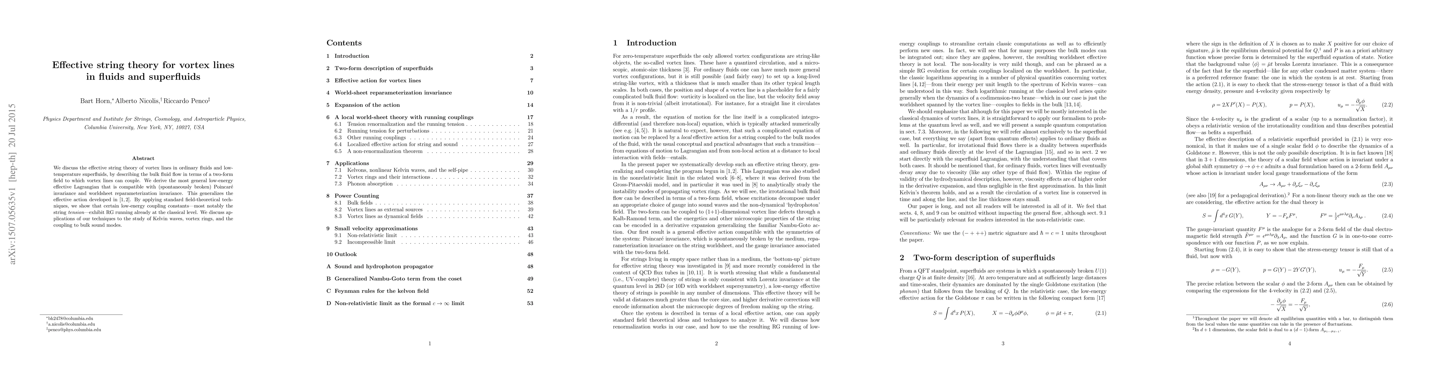 Researchers develop a new effective string theory for vortex lines in fluids and superfluids, showing that certain coupling constants exhibit