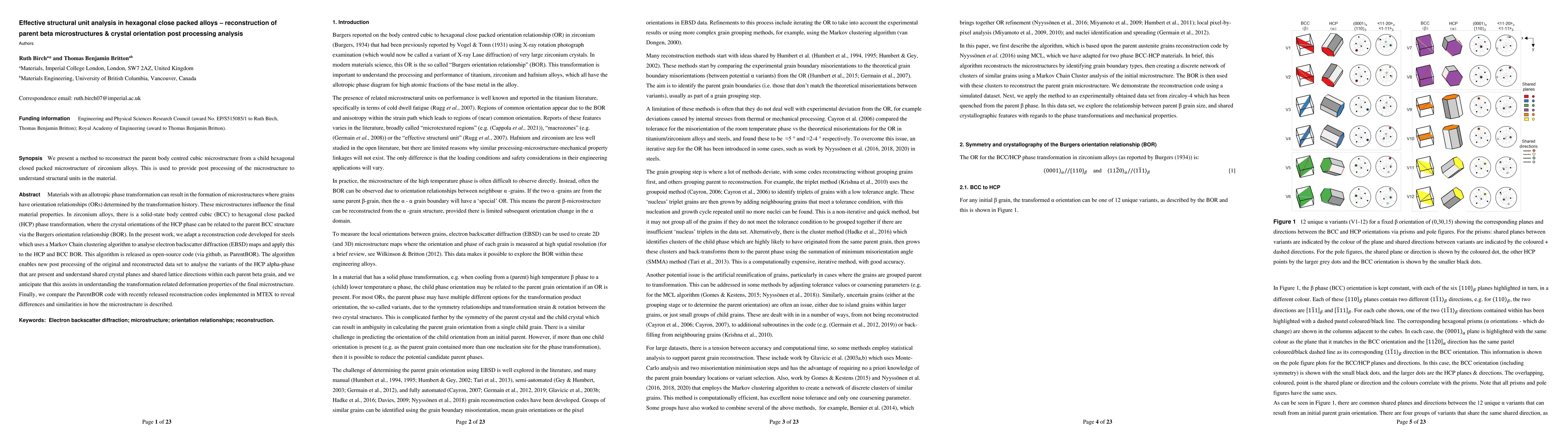Researchers developed an algorithm to analyze the crystal orientation relationships in zirconium alloys after a solid-state phase transformation, aiming to understand deformation properties of the final microstructure.