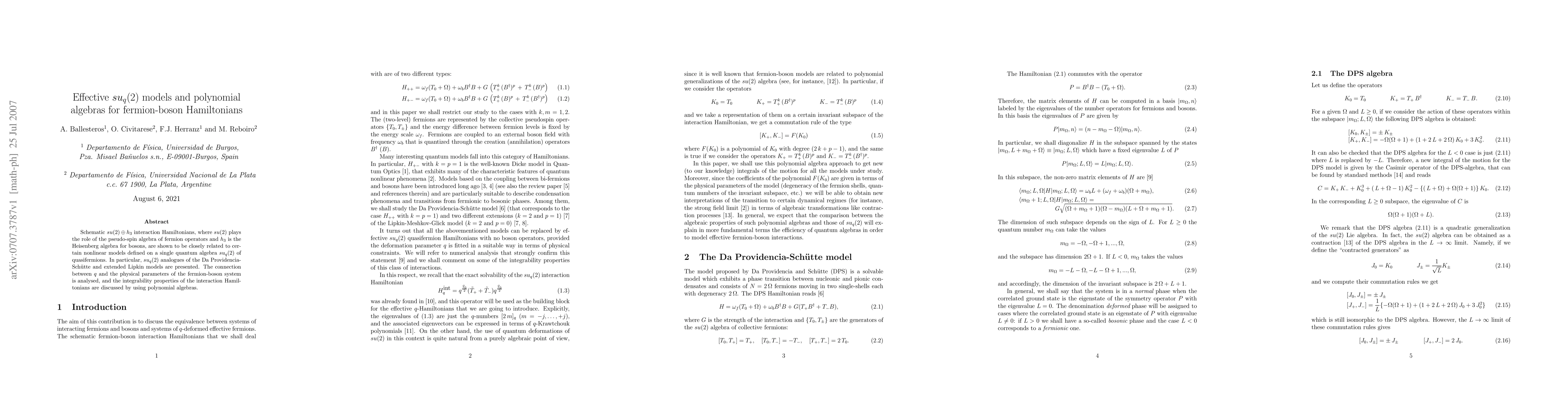This paper explores the relationship between fermion-boson Hamiltonians and nonlinear models based on the quantum algebra q-su(2), presenting q-su(2) analogues of the Da Providencia-Schutte and extended Lipkin models. It analyzes the connection between q and physical parameters and discusses the integrability of these Hamiltonians via polynomial algebras.