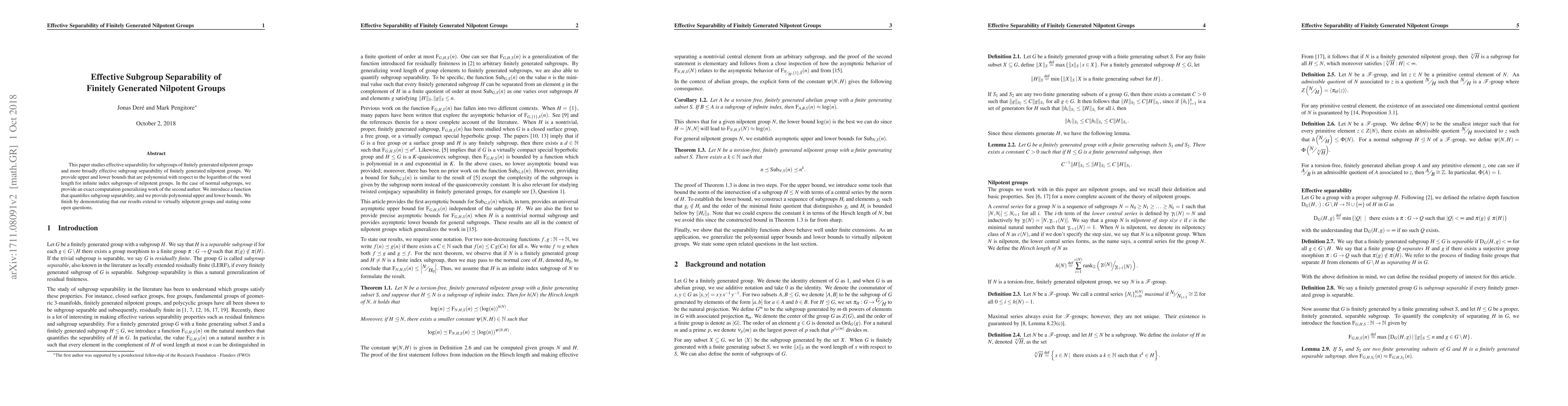 This paper investigates effective subgroup separability for finitely generated nilpotent groups, providing polynomial bounds for infinite index subgroups and exact computations for normal subgroups, and extending the findings to virtually nilpotent groups. The study introduces a function to quantify separability and demonstrates its applicability.