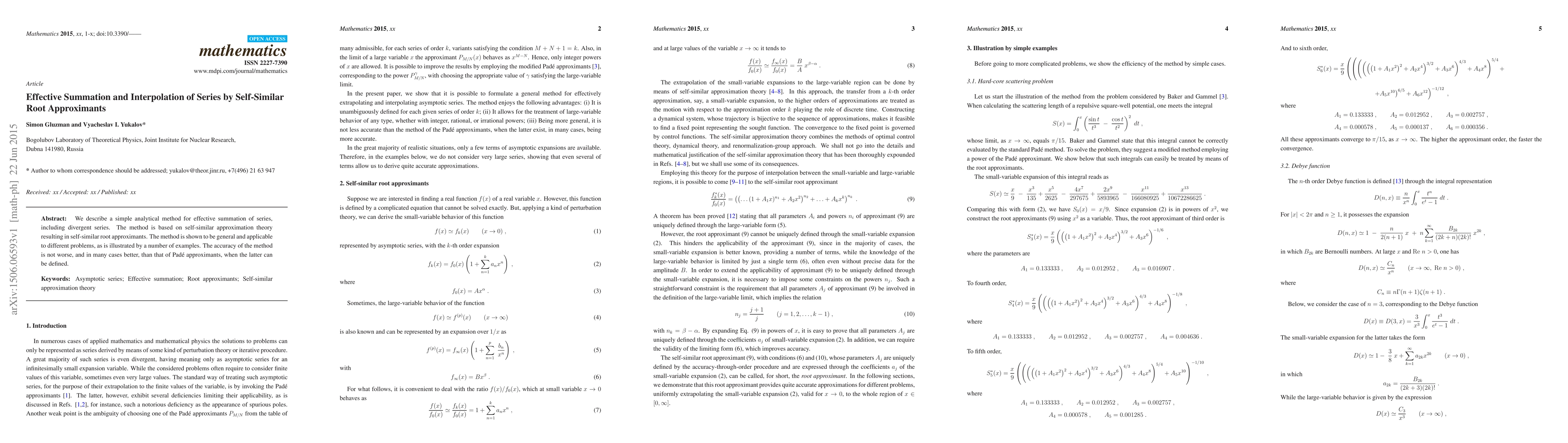 We describe a simple analytical method for effective summation of series, including divergent series. The method is based on self-similar approximation theory resulting in self-similar root approximants. The method is shown to be general and applicable to different problems, as is illustrated by a number of examples. The accuracy of the method is not worse, and in many cases better, than that of Pade approximants, when the latter can be defined.