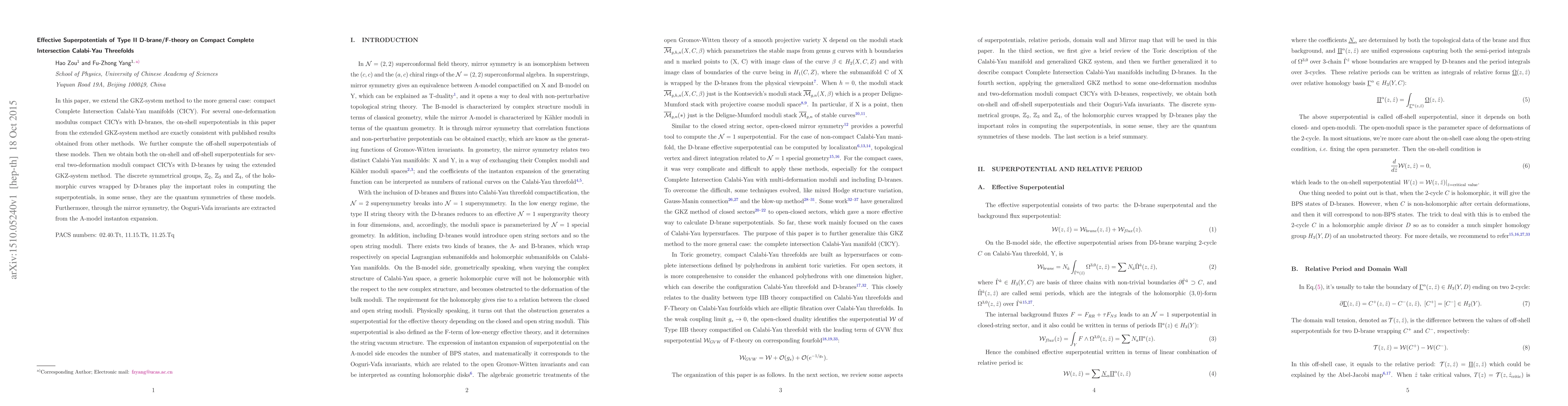 In this paper, we extend the GKZ-system method to the more general case: compact Complete Intersection Calabi-Yau manifolds (CICY). For several one-deformation modulus compact CICYs with D-branes, the on-shell superpotentials in this paper from the extended GKZ-system method are exactly consistent with published results obtained from other methods. We further compute the off-shell superpotentials of these models. Then we obtain both the on-shell and off-shell superpotentials for sev- eral two-deformation moduli compact CICYs with D-branes by using the extended GKZ-system method. The discrete symmetrical groups, Z2, Z3 and Z4, of the holo- morphic curves wrapped by D-branes play the important roles in computing the superpotentials, in some sense, they are the quantum symmetries of these models. Furthermore, through the mirror symmetry, the Ooguri-Vafa invariants are extracted from the A-model instanton expansion.