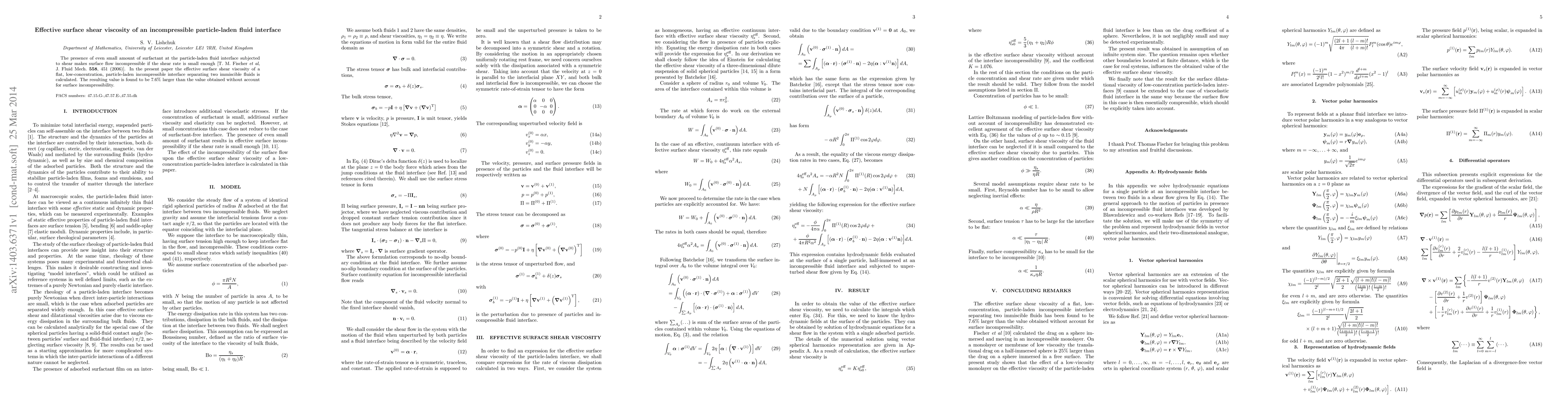 This paper calculates the effective surface shear viscosity of a particle-laden fluid interface under shear, finding it 7.6% higher than previously estimated, due to the incompressibility of the surface flow when small amounts of surfactants are present.