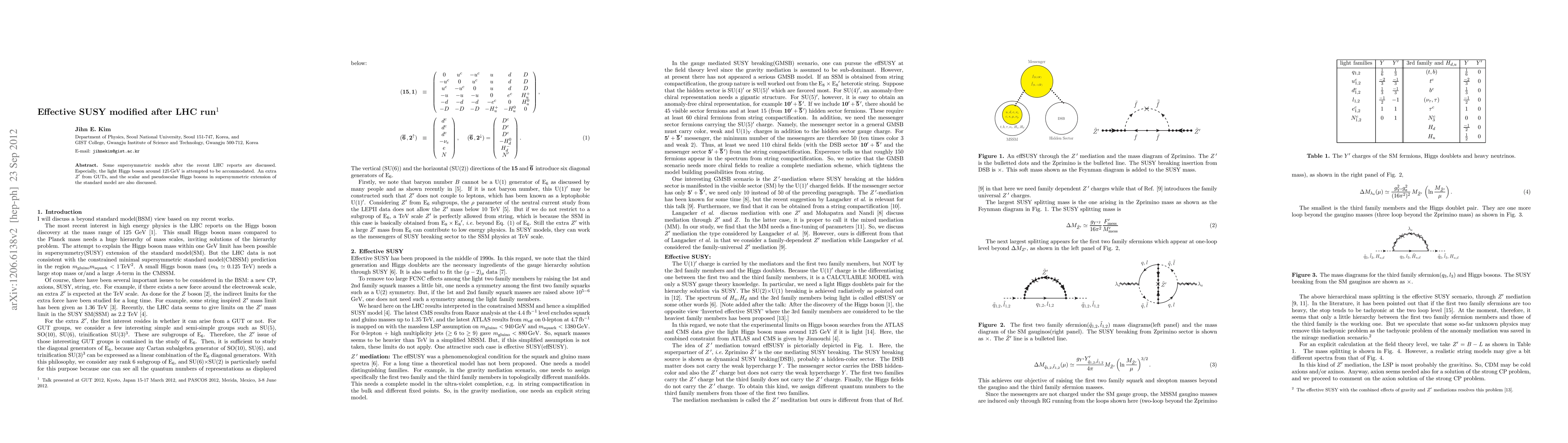 Some supersymmetric models after the recent LHC reports are discussed. Especially, the light Higgs boson around 125GeV is attempted to be accommodated. An extra Z' from GUTs, and the scalar and pseudoscalar Higgs bosons in supersymmetric extension of the standard model are also discussed.