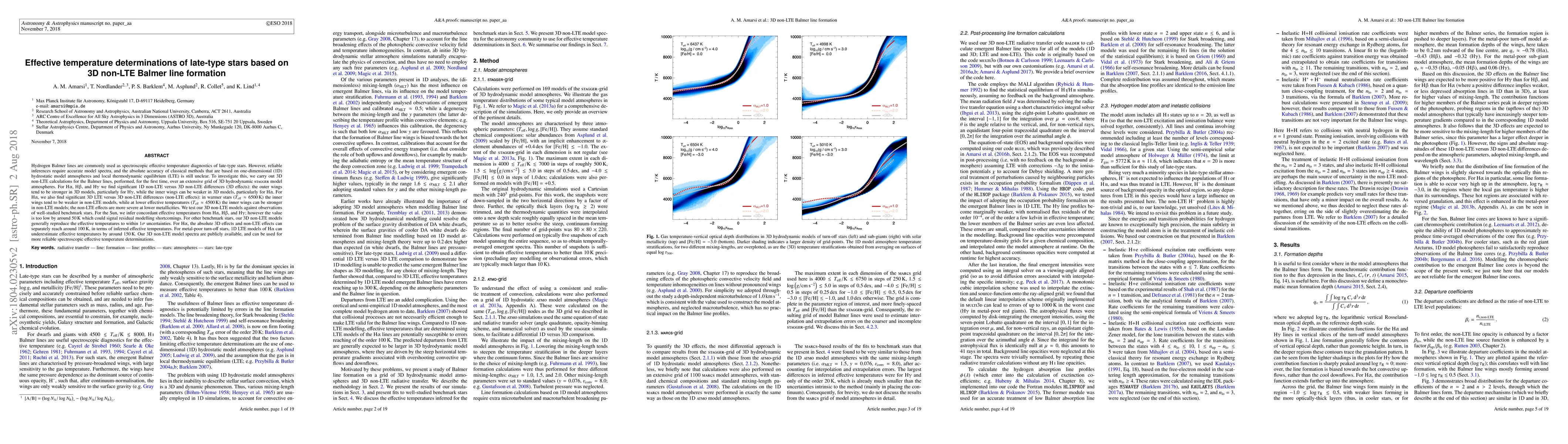 This paper investigates the accuracy of effective temperature determinations for late-type stars using 3D non-LTE Balmer line formation, finding significant discrepancies compared to 1D models. The 3D non-LTE models show stronger outer wings and weaker inner wings for Balmer lines, especially H$\alpha$, and reveal that non-LTE effects can significantly alter inferred temperatures, particularly in cooler stars.