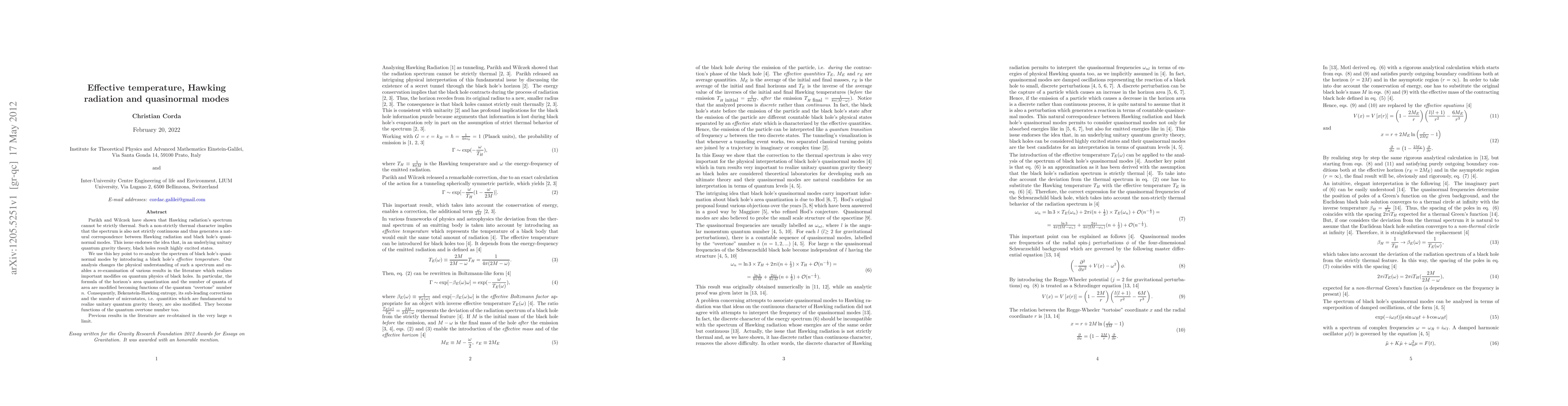 This paper explores the non-thermal spectrum of Hawking radiation and its connection to black hole quasinormal modes, introducing an effective temperature. It modifies the understanding of quasinormal modes, leading to changes in area quantization, Bekenstein-Hawking entropy, and the number of microstates, all now dependent on the quantum overtone number.