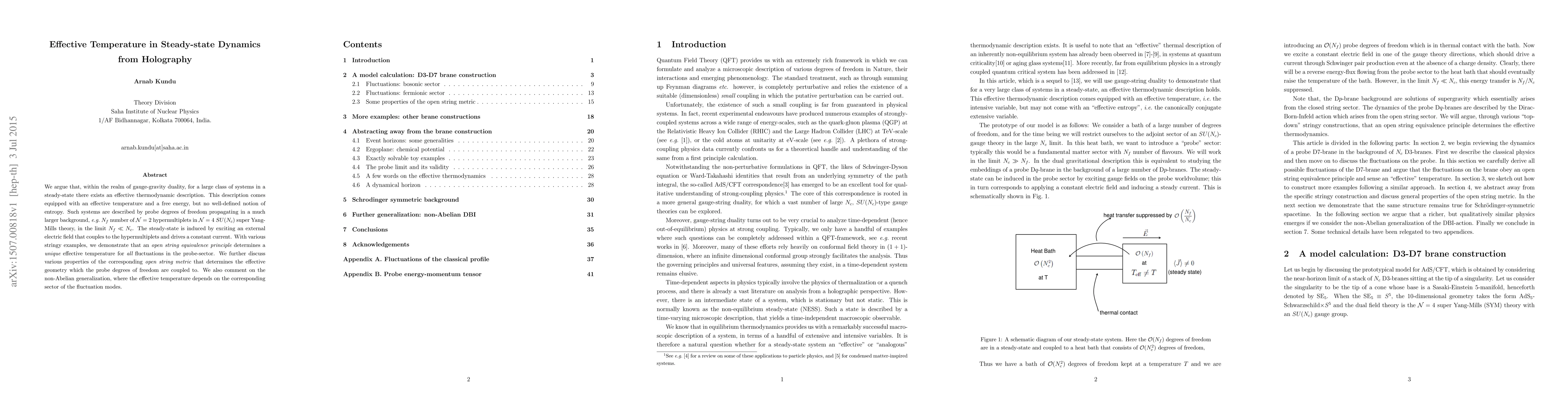 We argue that, within the realm of gauge-gravity duality, for a large class of systems in a steady-state there exists an effective thermodynamic description. This description comes equipped with an effective temperature and a free energy, but no well-defined notion of entropy. Such systems are described by probe degrees of freedom propagating in a much larger background, e.g. $N_f$ number of ${\cal N} =2$ hypermultiplets in ${\cal N}=4$ $SU(N_c)$ super Yang-Mills theory, in the limit $N_f \ll N_c$. The steady-state is induced by exciting an external electric field that couples to the hypermultiplets and drives a constant current. With various stringy examples, we demonstrate that an open string equivalence principle determines a unique effective temperature for all fluctuations in the probe-sector. We further discuss various properties of the corresponding open string metric that determines the effective geometry which the probe degrees of freedom are coupled to. We also comment on the non-Abelian generalization, where the effective temperature depends on the corresponding sector of the fluctuation modes.