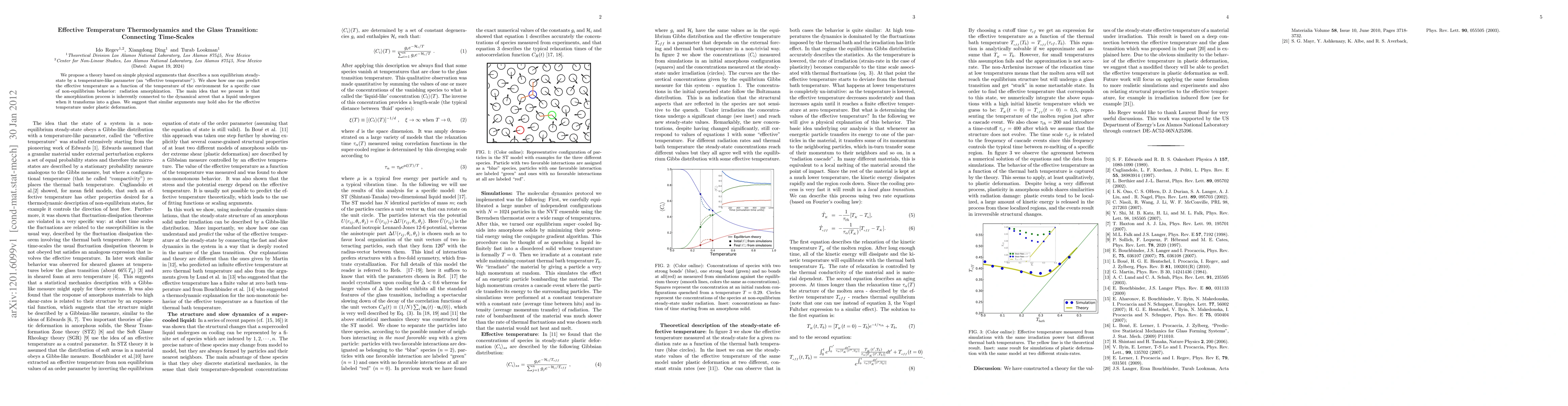 We propose a theory based on simple physical arguments that describes a non equilibrium steady-state by a temperature-like parameter (an "effective temperature"). We show how one can predict the effective temperature as a function of the temperature of the environment for a specific case of non-equilibrium behavior: radiation amorphization. The main idea that we present is that the amorphization process is inherently connected to the dynamical arrest that a liquid undergoes when it transforms into a glass. We suggest that similar arguments may hold also for the effective temperature under plastic deformation.