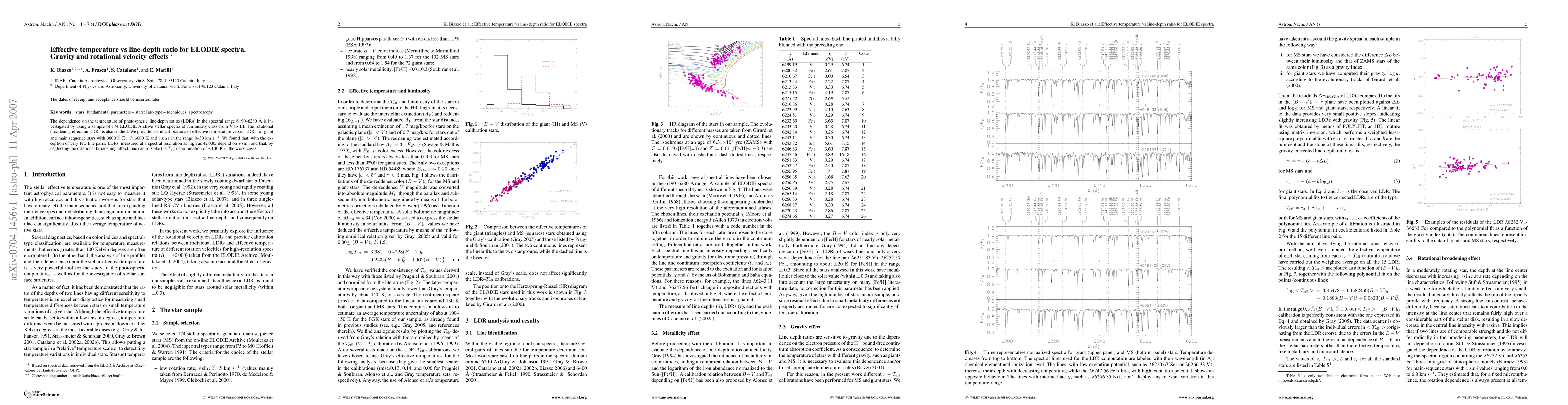 This study investigates the relationship between effective temperature and photospheric line-depth ratios (LDRs) in ELODIE spectra, finding that LDRs depend on both temperature and rotational velocity. Calibrations for effective temperature versus LDRs are provided for stars with temperatures ranging from 3800 to 6000 K, highlighting the importance of accounting for rotational broadening to avoid significant temperature determination errors.