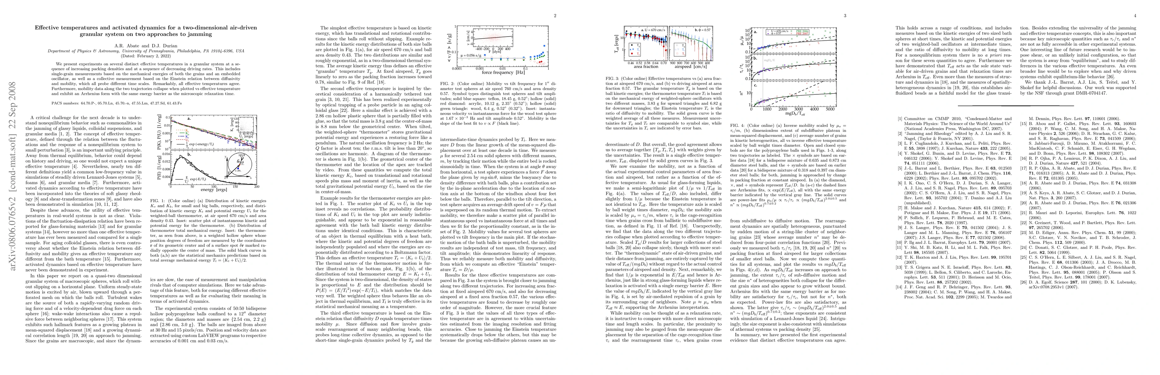 We present experiments on several distinct effective temperatures in a granular system at a sequence of increasing packing densities and at a sequence of decreasing driving rates. This includes single-grain measurements based on the mechanical energies of both the grains and an embedded oscillator, as well as a collective measurement based on the Einstein relation between diffusivity and mobility, which all probe different time scales. Remarkably, all effective temperatures agree. Furthermore, mobility data along the two trajectories collapse when plotted vs effective temperature and exhibit an Arrhenius form with the same energy barrier as the microscopic relaxation time.