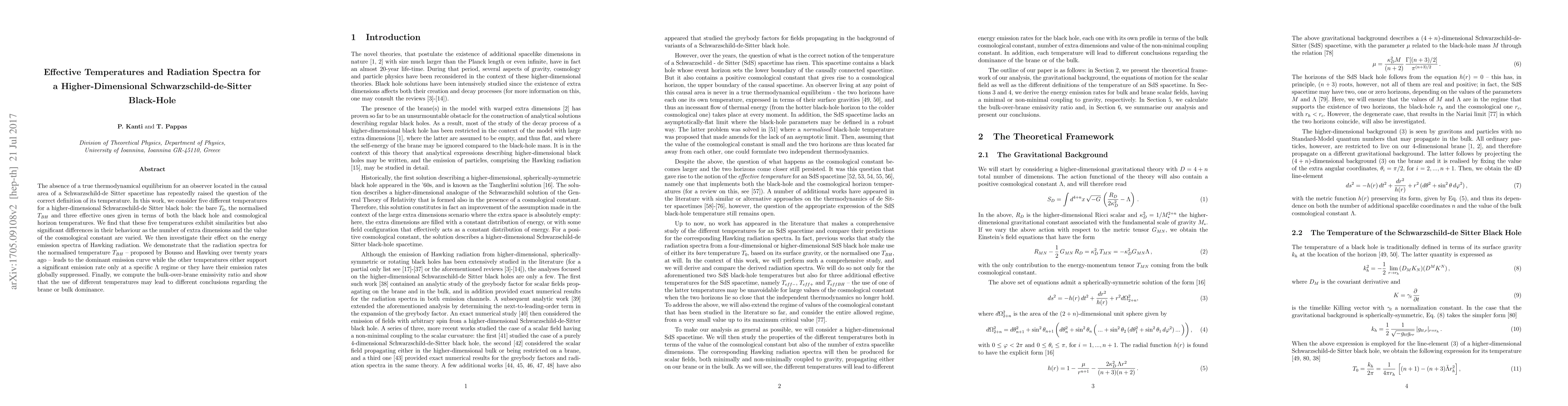 This paper investigates five temperatures for a higher-dimensional Schwarzschild-de Sitter black hole, revealing significant differences in their behavior and effects on Hawking radiation spectra. The normalized temperature $T_{BH}$ is shown to dominate the emission curve, while other temperatures have either limited or globally suppressed emission rates.