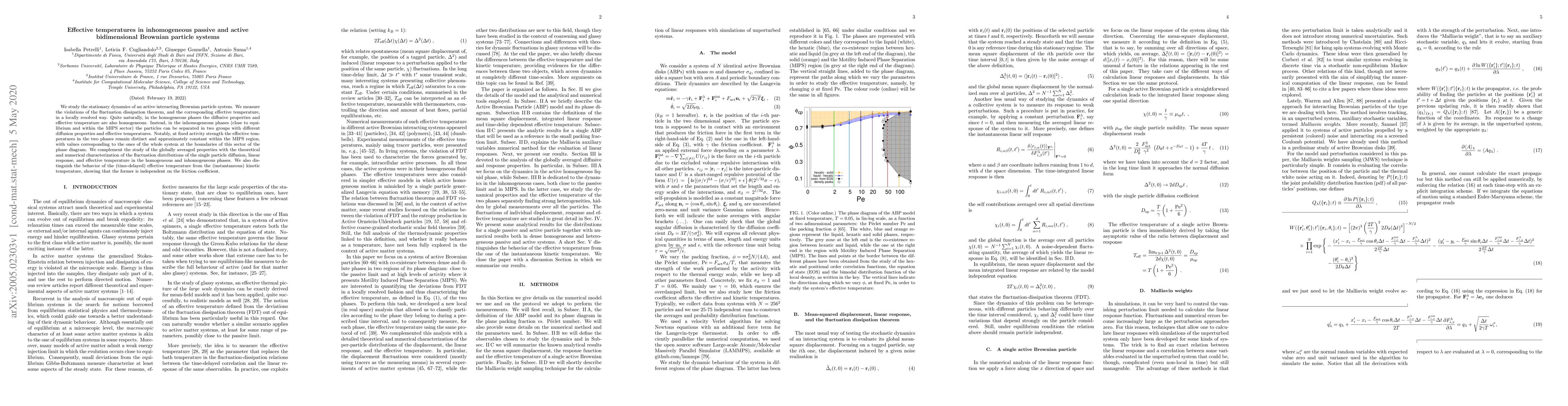We study the stationary dynamics of an active interacting Brownian particle system. We measure the violations of the fluctuation dissipation theorem, and the corresponding effective temperature, in a locally resolved way. Quite naturally, in the homogeneous phases the diffusive properties and effective temperature are also homogeneous. Instead, in the inhomogeneous phases (close to equilibrium and within the MIPS sector) the particles can be separated in two groups with different diffusion properties and effective temperatures. Notably, at fixed activity strength the effective temperatures in the two phases remain distinct and approximately constant within the MIPS region, with values corresponding to the ones of the whole system at the boundaries of this sector of the phase diagram. We complement the study of the globally averaged properties with the theoretical and numerical characterization of the fluctuation distributions of the single particle diffusion, linear response, and effective temperature in the homogeneous and inhomogeneous phases. We also distinguish the behavior of the (time-delayed) effective temperature from the (instantaneous) kinetic temperature, showing that the former is independent on the friction coefficient.