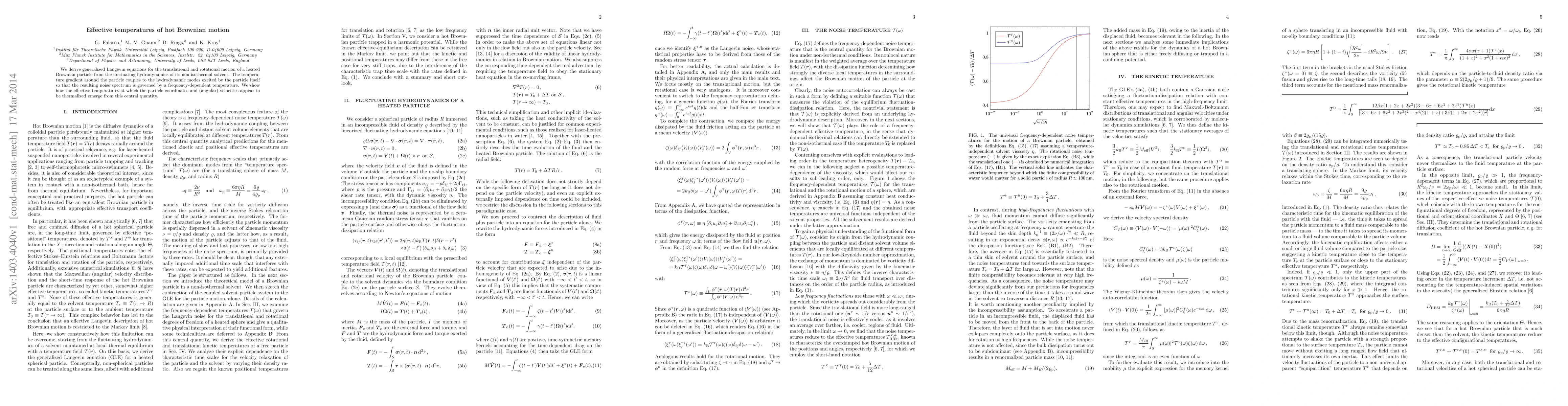 We derive generalized Langevin equations for the translational and rotational motion of a heated Brownian particle from the fluctuating hydrodynamics of its non-isothermal solvent. The temperature gradient around the particle couples to the hydrodynamic modes excited by the particle itself so that the resulting noise spectrum is governed by a frequency-dependent temperature. We show how the effective temperatures at which the article coordinates and (angular) velocities appear to be thermalized emerge from this central quantity.