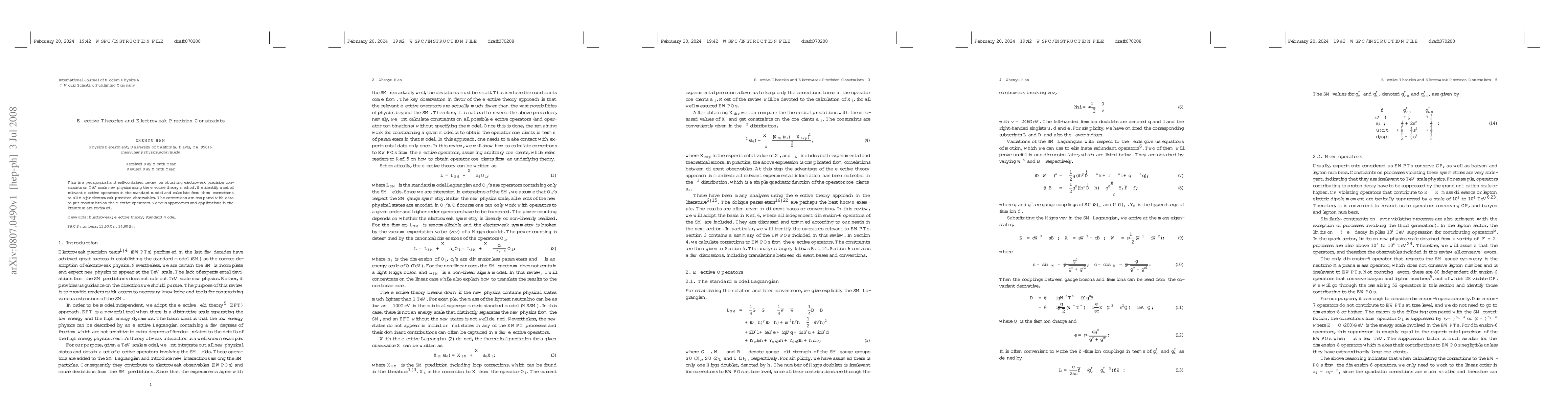 This paper reviews the effective theory method for deriving electroweak precision constraints on new physics at the TeV scale, identifying relevant operators and calculating corrections to major observables, which are then compared with experimental data to set limits on these operators. Various methodologies and applications in the field are also discussed.