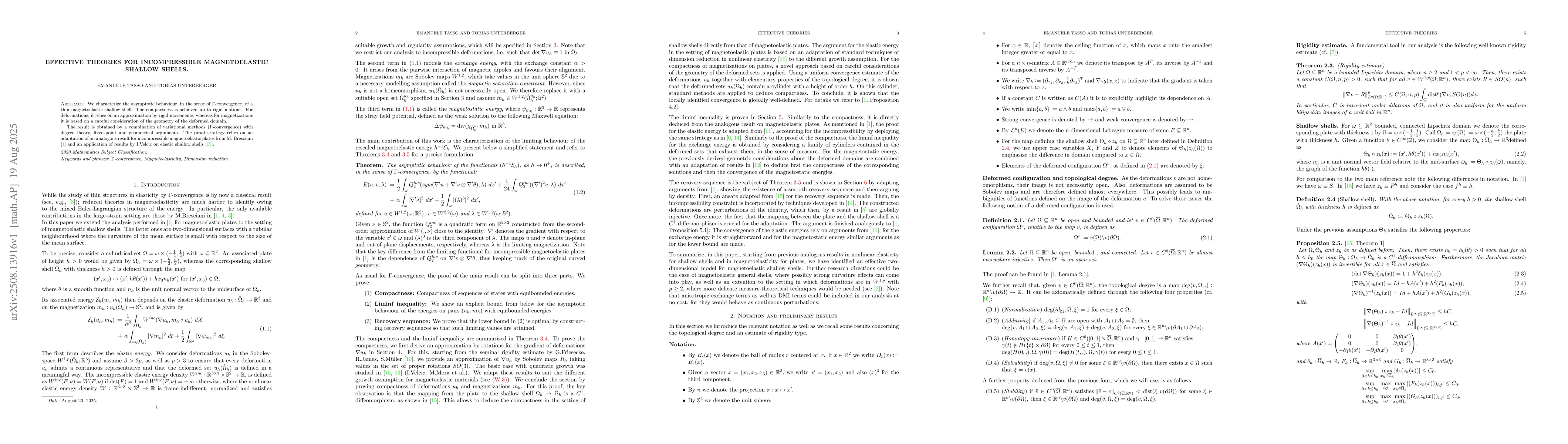 We characterize the asymptotic behaviour, in the sense of $\Gamma$-convergence, of a thin magnetoelastic shallow shell. The compactness is achieved up to rigid motions. For deformations, it relies on an approximation by rigid movements, whereas for magnetizations it is based on a careful consideration of the geometry of the deformed domain. The result is obtained by a combination of variational methods ($\Gamma$-convergence) with degree theory, fixed-point and geometrical arguments. The proof strategy relies on an adaptation of an analogous result for incompressible magnetoelastic plates from M. Bresciani in arXiv:2007.14122 and an application of results by I.Velcic on elastic shallow shells in arXiv:1102.2647.