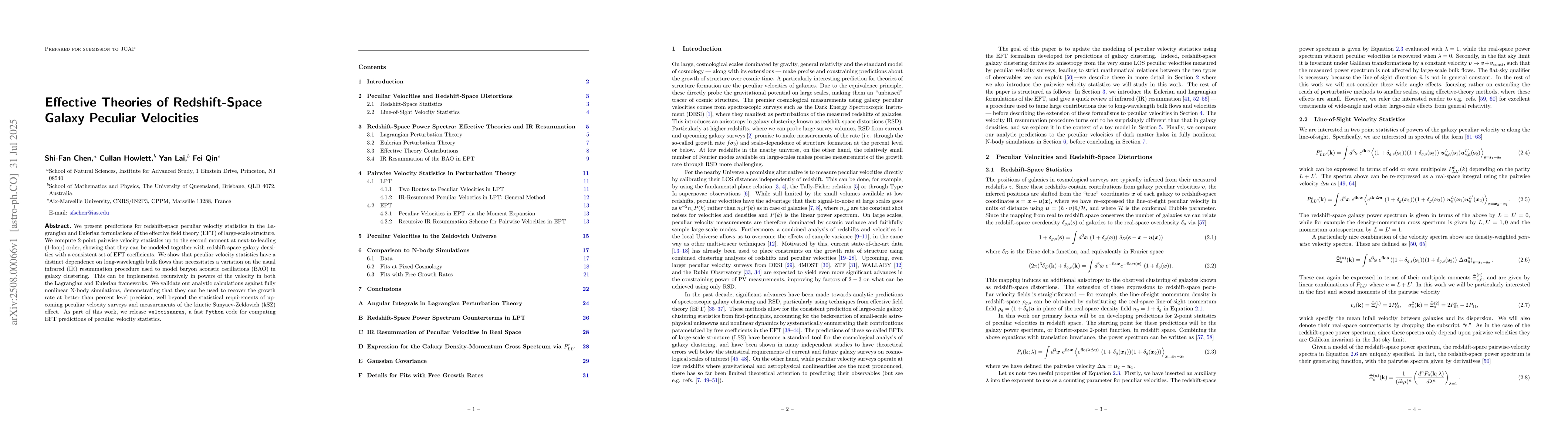 We present predictions for redshift-space peculiar velocity statistics in the Lagrangian and Eulerian formulations of the effective field theory (EFT) of large-scale structure. We compute 2-point pairwise velocity statistics up to the second moment at next-to-leading (1-loop) order, showing that they can be modeled together with redshift-space galaxy densities with a consistent set of EFT coefficients. We show that peculiar velocity statistics have a distinct dependence on long-wavelength bulk flows that necessitates a variation on the usual infrared (IR) resummation procedure used to model baryon acoustic oscillations (BAO) in galaxy clustering. This can be implemented recursively in powers of the velocity in both the Lagrangian and Eulerian frameworks. We validate our analytic calculations against fully nonlinear N-body simulations, demonstrating that they can be used to recover the growth rate at better than percent level precision, well beyond the statistical requirements of upcoming peculiar velocity surveys and measurements of the kinetic Sunyaev-Zeldovich (kSZ) effect. As part of this work, we release $\texttt{velocisaurus}$, a fast $\texttt{Python}$ code for computing EFT predictions of peculiar velocity statistics.