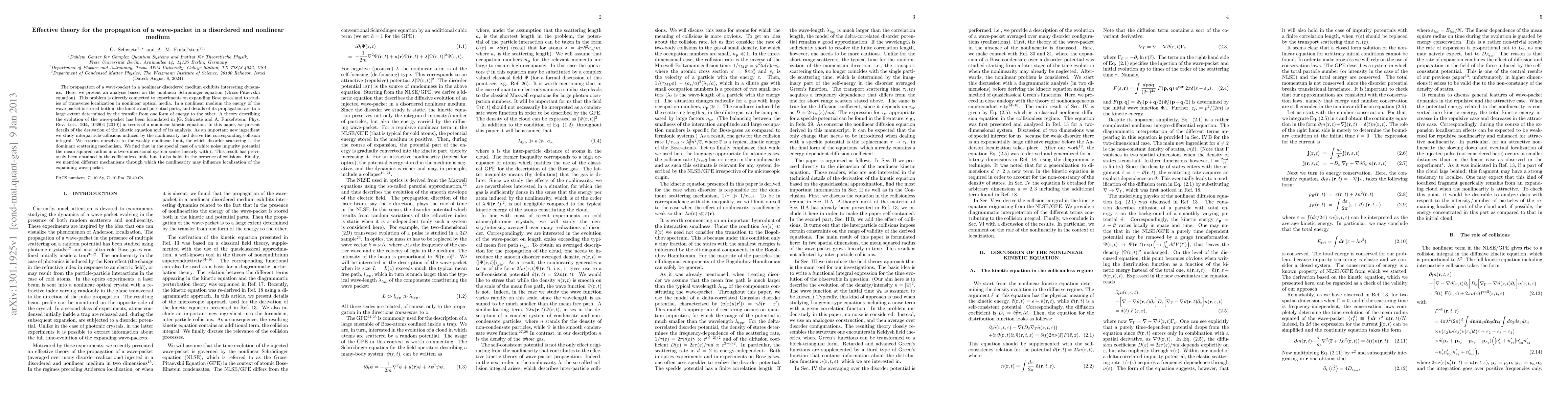 This paper develops a theory for wave-packet propagation in nonlinear disordered media using the nonlinear Schrödinger equation. It introduces a nonlinear kinetic equation, including interparticle-collision effects, and finds that in a two-dimensional system with a white noise impurity potential, the mean squared radius scales linearly with time, even with collisions.