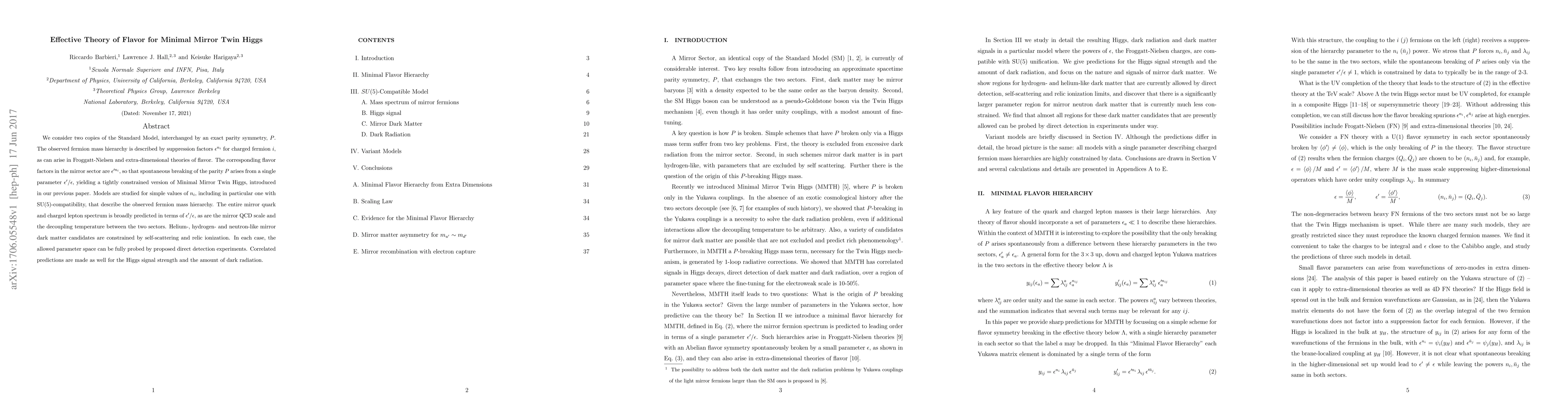 We consider two copies of the Standard Model, interchanged by an exact parity symmetry, P. The observed fermion mass hierarchy is described by suppression factors $\epsilon^{n_i}$ for charged fermion $i$, as can arise in Froggatt-Nielsen and extra-dimensional theories of flavor. The corresponding flavor factors in the mirror sector are $\epsilon'^{n_i}$, so that spontaneous breaking of the parity P arises from a single parameter $\epsilon'/\epsilon$, yielding a tightly constrained version of Minimal Mirror Twin Higgs, introduced in our previous paper. Models are studied for simple values of $n_i$, including in particular one with SU(5)-compatibility, that describe the observed fermion mass hierarchy. The entire mirror quark and charged lepton spectrum is broadly predicted in terms of $\epsilon'/\epsilon$, as are the mirror QCD scale and the decoupling temperature between the two sectors. Helium-, hydrogen- and neutron-like mirror dark matter candidates are constrained by self-scattering and relic ionization. In each case, the allowed parameter space can be fully probed by proposed direct detection experiments. Correlated predictions are made as well for the Higgs signal strength and the amount of dark radiation.