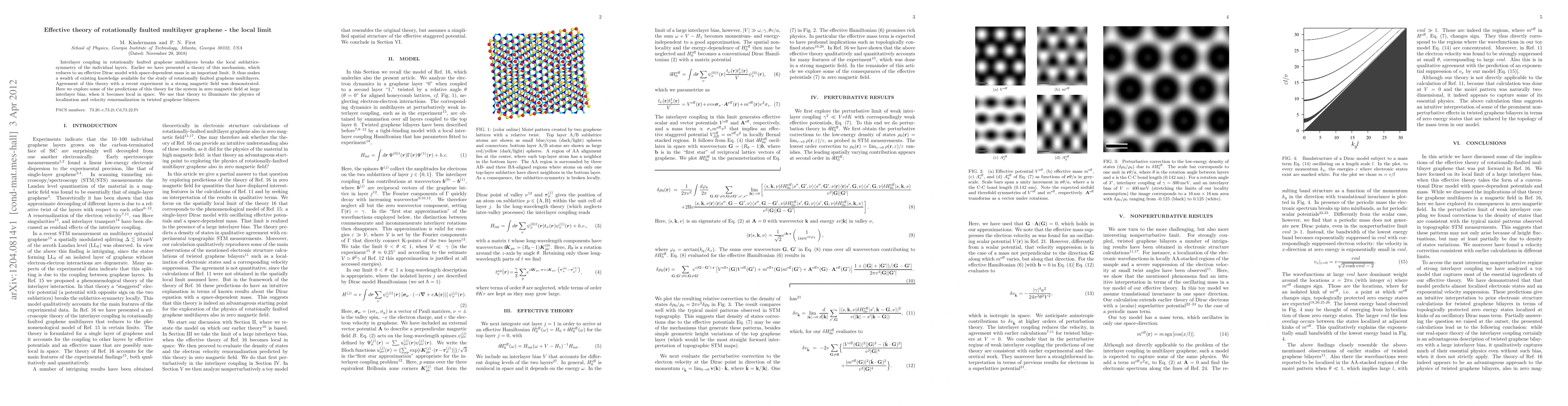 This paper presents an effective theory for rotationally faulted multilayer graphene, reducing to a local, space-dependent Dirac model that utilizes existing knowledge to study interlayer coupling effects. The theory's predictions are explored in zero magnetic field conditions, illuminating localization and velocity renormalization in twisted graphene bilayers.