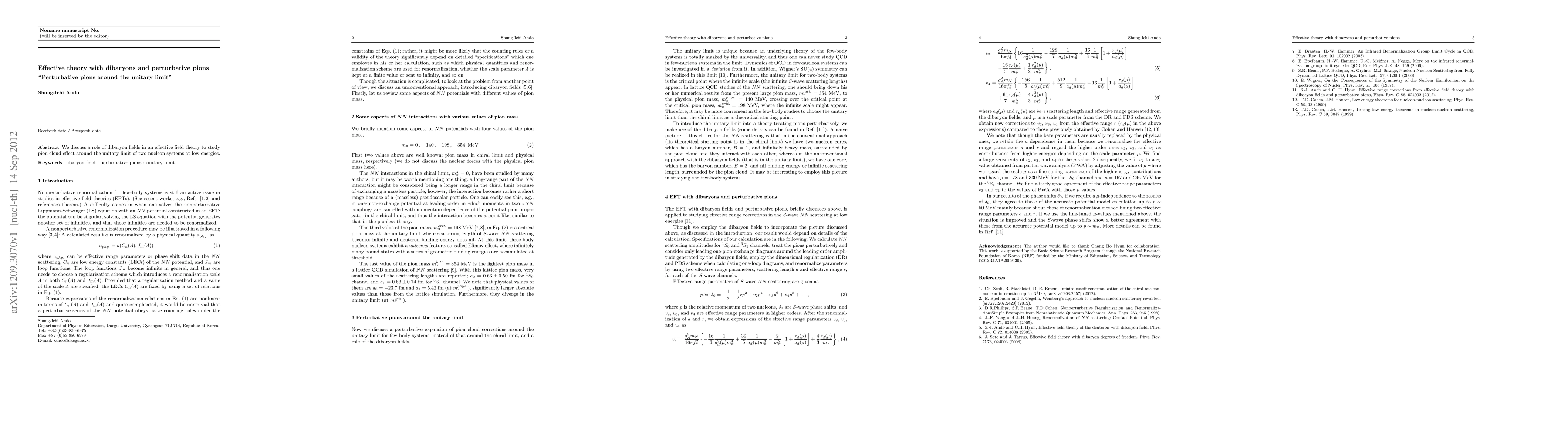 We discuss a role of dibaryon fields in an effective field theory to study pion cloud effect around the unitary limit of two nucleon systems at low energies.