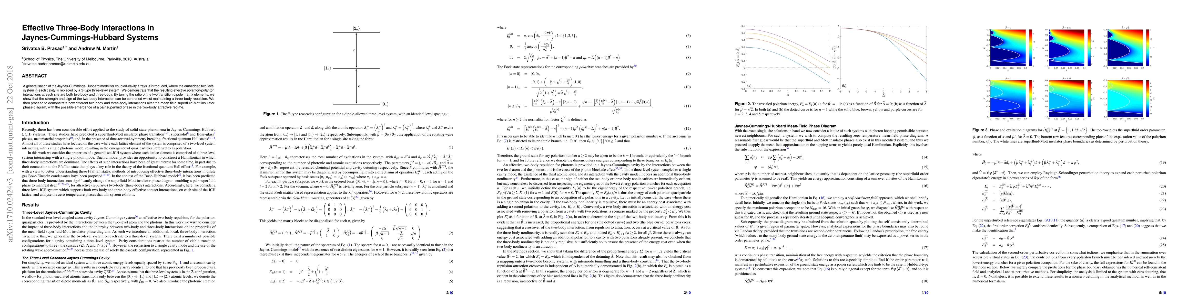 A generalisation of the Jaynes-Cummings-Hubbard model for coupled-cavity arrays is introduced, where the embedded two-level system in each cavity is replaced by a $\Xi$-type three-level system. We demonstrate that the resulting effective polariton-polariton interactions at each site are both two-body and three-body. By tuning the ratio of the two transition dipole matrix elements, we show that the strength and sign of the two-body interaction can be controlled whilst maintaining a three-body repulsion. We then proceed to demonstrate how different two-body and three-body interactions alter the mean field superfluid-Mott insulator phase diagram, with the possible emergence of a pair superfluid phase in the two-body attractive regime.