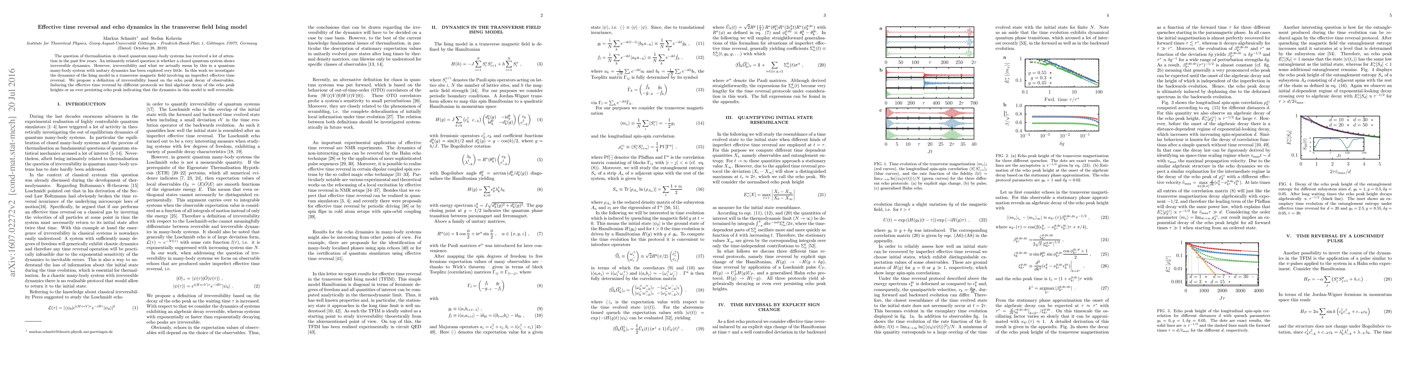 The question of thermalisation in closed quantum many-body systems has received a lot of attention in the past few years. An intimately related question is whether a closed quantum system shows irreversible dynamics. However, irreversibility and what we actually mean by this in a quantum many-body system with unitary dynamics has been explored very little. In this work we investigate the dynamics of the Ising model in a transverse magnetic field involving an imperfect effective time reversal. We propose a definition of irreversibility based on the echo peak decay of observables. Inducing the effective time reversal by different protocols we find algebraic decay of the echo peak heights or an ever persisting echo peak indicating that the dynamics in this model is well reversible.