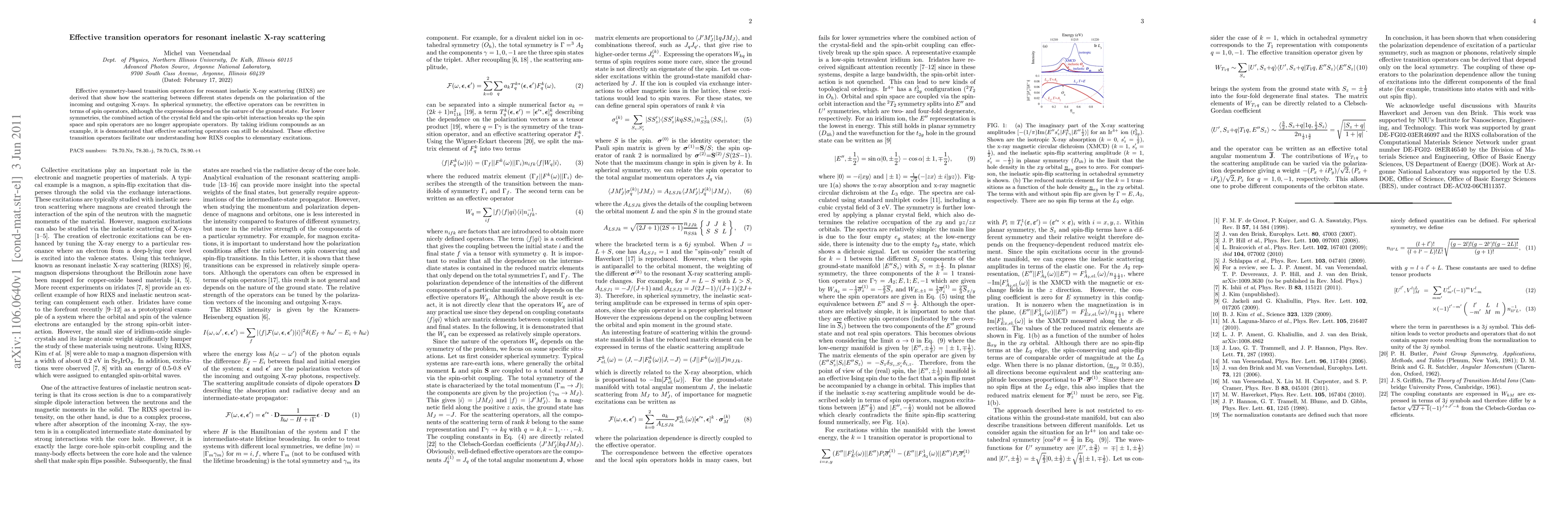 The paper derives effective transition operators for resonant inelastic X-ray scattering (RIXS) based on symmetry considerations, showing how scattering depends on X-ray polarization. It demonstrates the applicability of these operators in iridium compounds, despite lower symmetries making spin operators inappropriate.