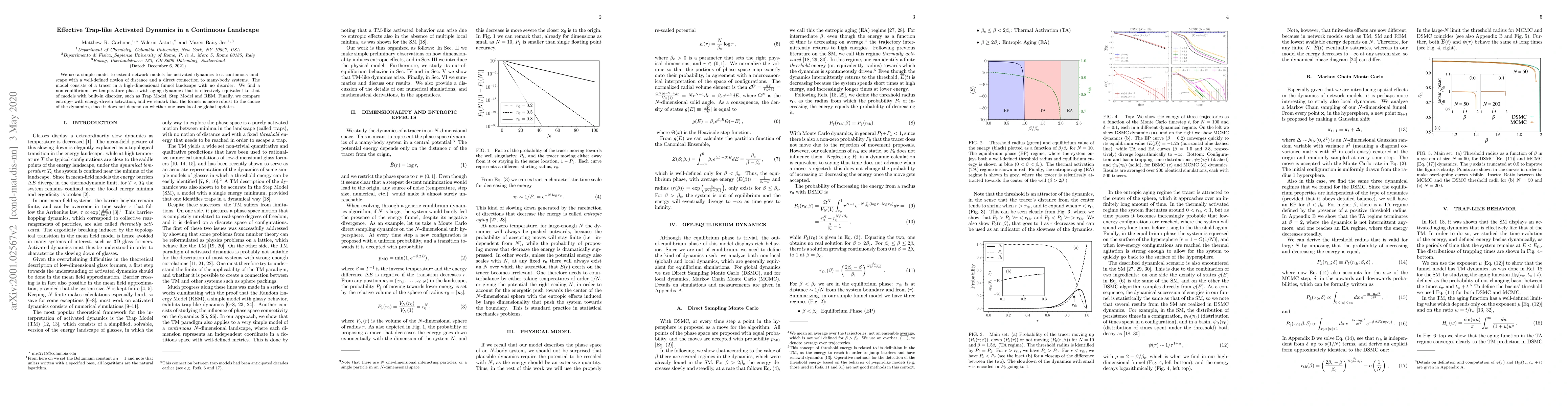 This paper proposes a continuous landscape model for activated dynamics where a tracer moves in a high-dimensional funnel without disorder, revealing a non-equilibrium low-temperature phase with aging dynamics similar to those seen in disordered models like the Trap Model.