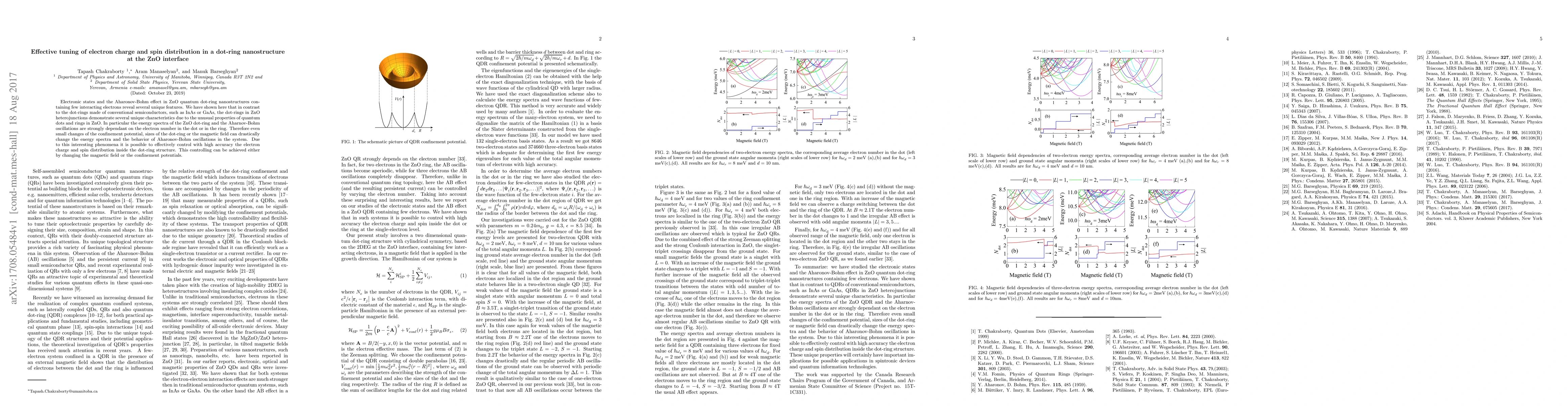 This paper explores ZnO quantum dot-ring nanostructures, revealing unique electronic states and Aharonov-Bohm effects due to the material's properties. The study demonstrates precise control over electron charge and spin distribution by adjusting confinement potentials or magnetic fields, unlike conventional semiconductor dot-rings.