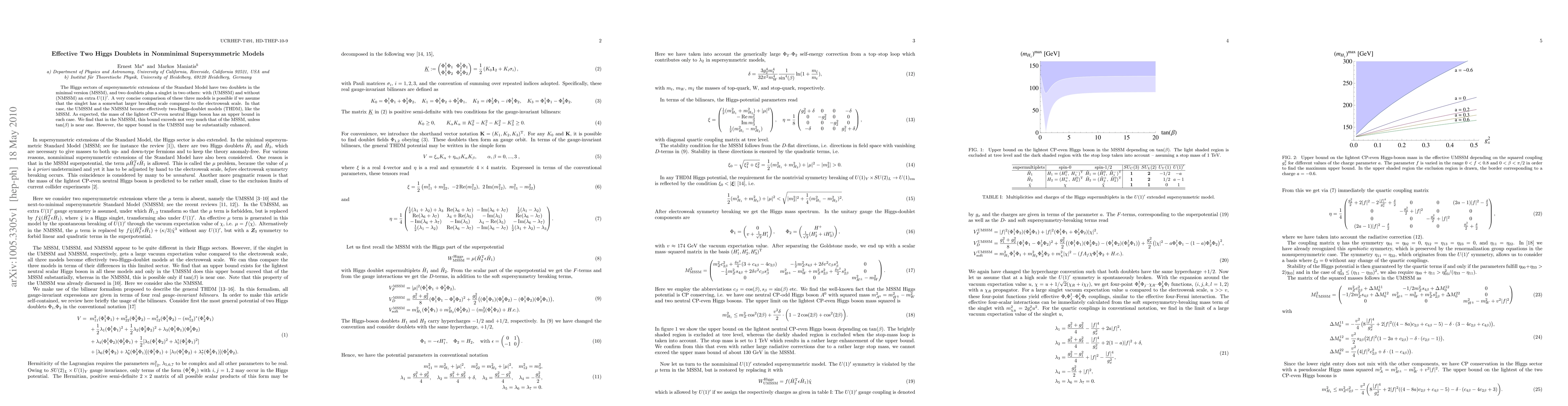 The Higgs sectors of supersymmetric extensions of the Standard Model have two doublets in the minimal version (MSSM), and two doublets plus a singlet in two others: with (UMSSM) and without (NMSSM) an extra U(1)'. A very concise comparison of these three models is possible if we assume that the singlet has a somewhat larger breaking scale compared to the electroweak scale. In that case, the UMSSM and the NMSSM become effectively two-Higgs-doublet models (THDM), like the MSSM. As expected, the mass of the lightest CP-even neutral Higgs boson has an upper bound in each case. We find that in the NMSSM, this bound exceeds not very much that of the MSSM, unless tan(beta) is near one. However, the upper bound in the UMSSM may be substantially enhanced.