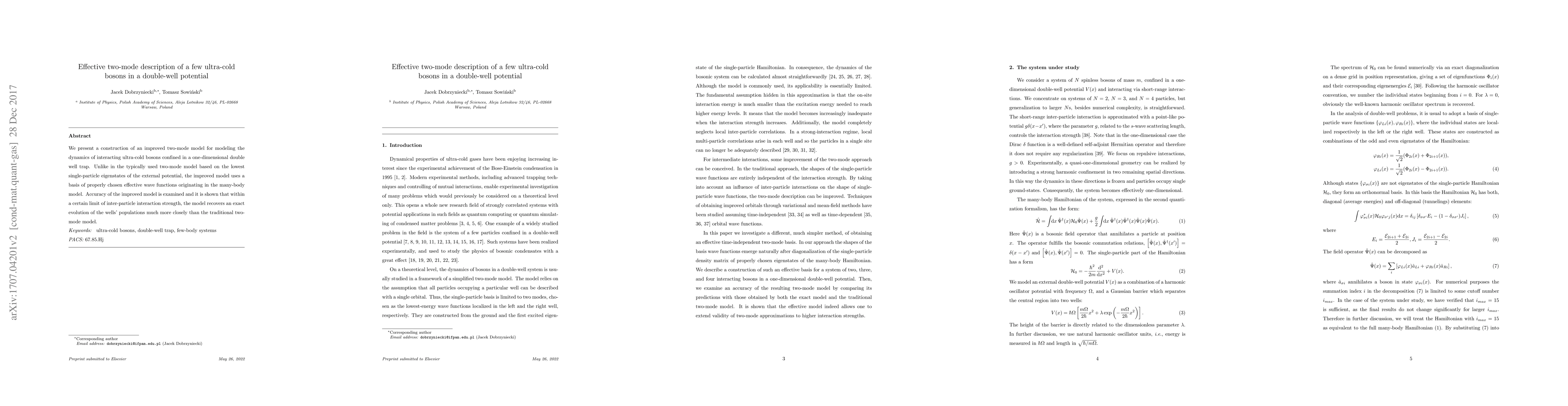 This paper constructs an improved two-mode model for ultra-cold bosons in a double-well potential, using effective wave functions from a many-body model. The new model shows greater accuracy in predicting the dynamics compared to traditional models, especially under moderate inter-particle interactions.