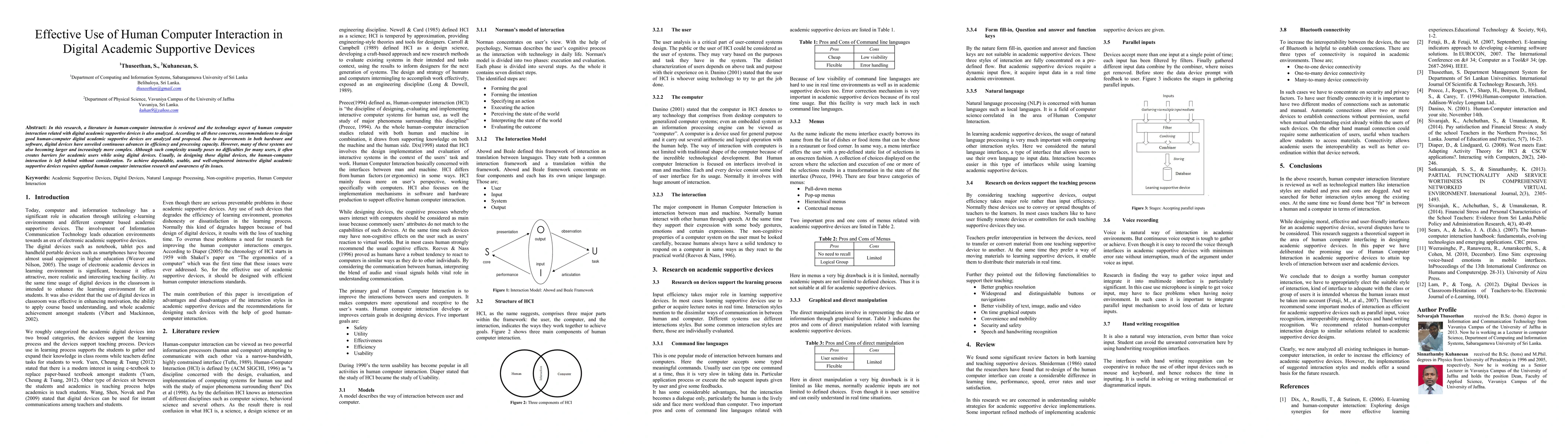 In this research, a literature in human-computer interaction is reviewed and the technology aspect of human computer interaction related with digital academic supportive devices is also analyzed. According to all these concerns, recommendations to design good human-computer digital academic supportive devices are analyzed and proposed. Due to improvements in both hardware and software, digital devices have unveiled continuous advances in efficiency and processing capacity. However, many of these systems are also becoming larger and increasingly more complex. Although such complexity usually poses no difficulties for many users, it often creates barriers for academic users while using digital devices. Usually, in designing those digital devices, the human-computer interaction is left behind without consideration. To achieve dependable, usable, and well-engineered interactive digital academic supportive devices requires applied human computer interaction research and awareness of its issues.