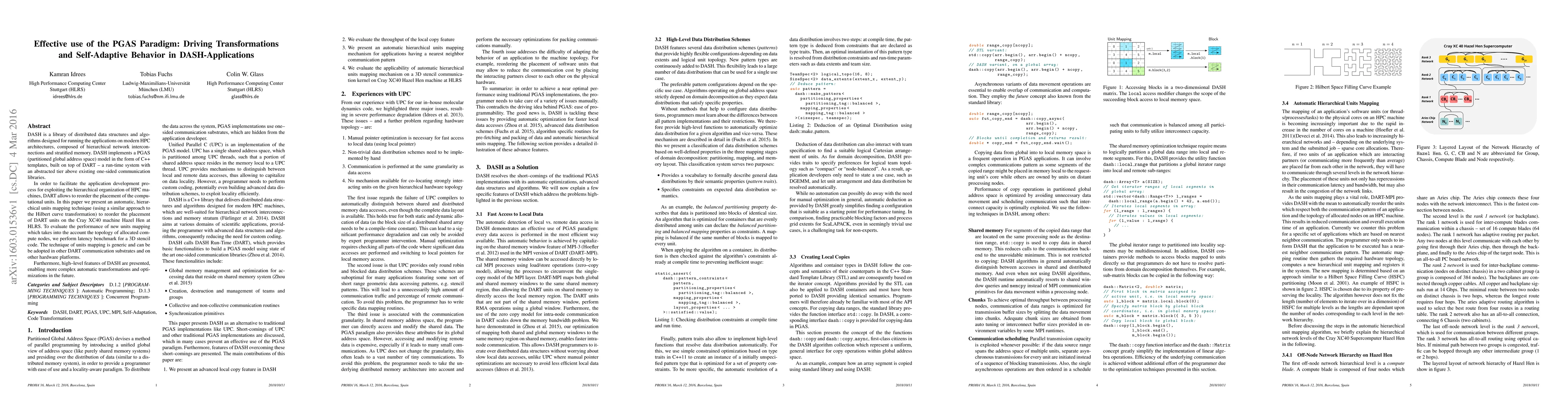 This paper explores the PGAS paradigm in DASH, a library for HPC applications, focusing on automatic hierarchical units mapping to optimize performance on Cray XC40. The proposed technique, evaluated via a 3D stencil code, demonstrates potential for broader application across different communication substrates and hardware platforms.