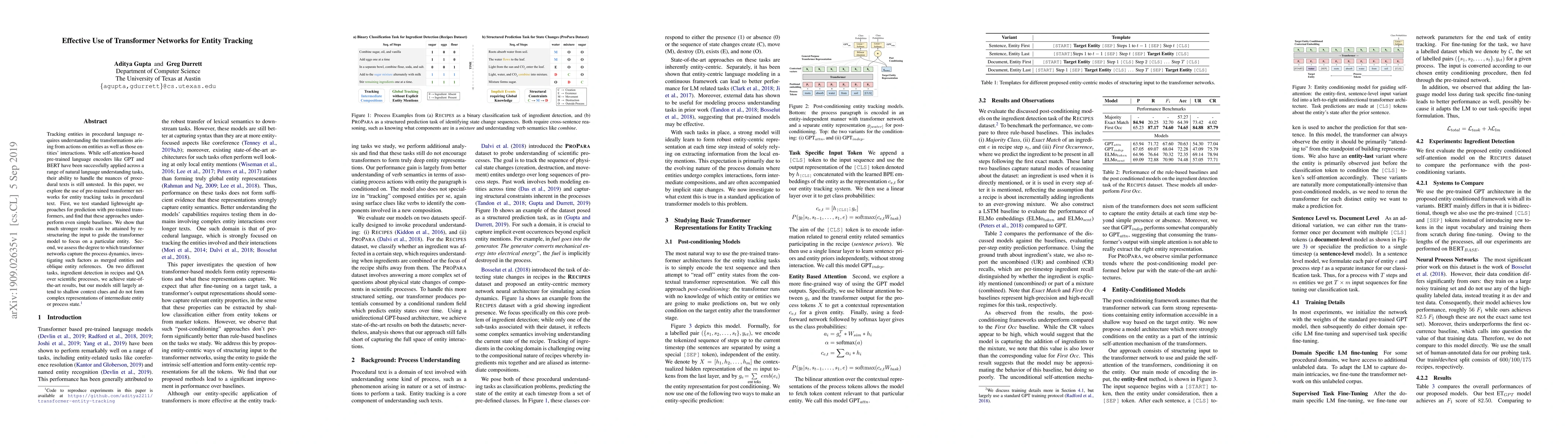 Researchers found that pre-trained transformer networks can improve entity tracking in procedural texts, but models still struggle to capture complex representations of intermediate state, highlighting the need for further improvement.